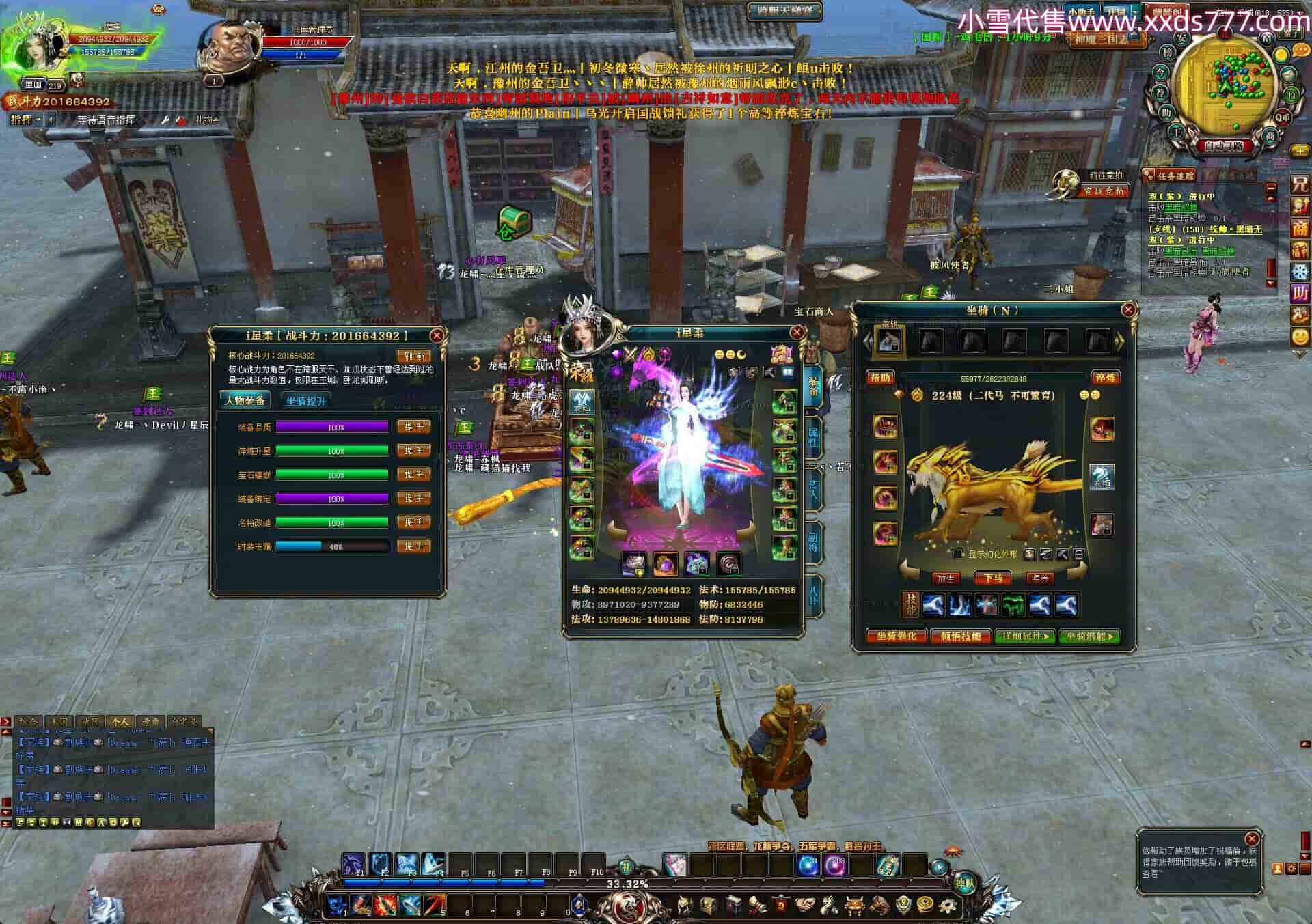 编号Z23204 丿灬Zeus丶熊猫 逐鹿天下 徐州 世界排名2名 49334W战力 人物混沌极品橙18X 传人混沌极品橙18X 副将混沌极品橙18X 马混沌极品橙14X(双潜能81级75级级) 史诗紫17披风 人物星魂16级 传人星魂16级 副将星魂16级 马星魂16级 人物铭刻18级 人物点亮18星 马铭刻14级 点亮14星 人紫龙印 马绿龙印 六等单双属性神圣石头 紫孔 已开2次永久18星套