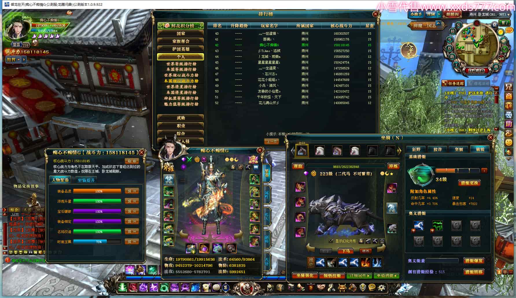 编号T24561 痴心不痴情G 龙腾问鼎 江州 本国排名42名 15811W战力 人物普通橙15X(4件混沌) 传人精良紫15X 副将极品紫12X 马史诗紫10X 精良紫15披风 人物星魂16级 传人星魂11级 副将星魂6级 马星魂10级 人物铭刻15级 人物点亮16星 马铭刻12级 马点亮12星 人绿龙印 马黄龙印 六等单双属性神圣完美无暇石头 黄孔