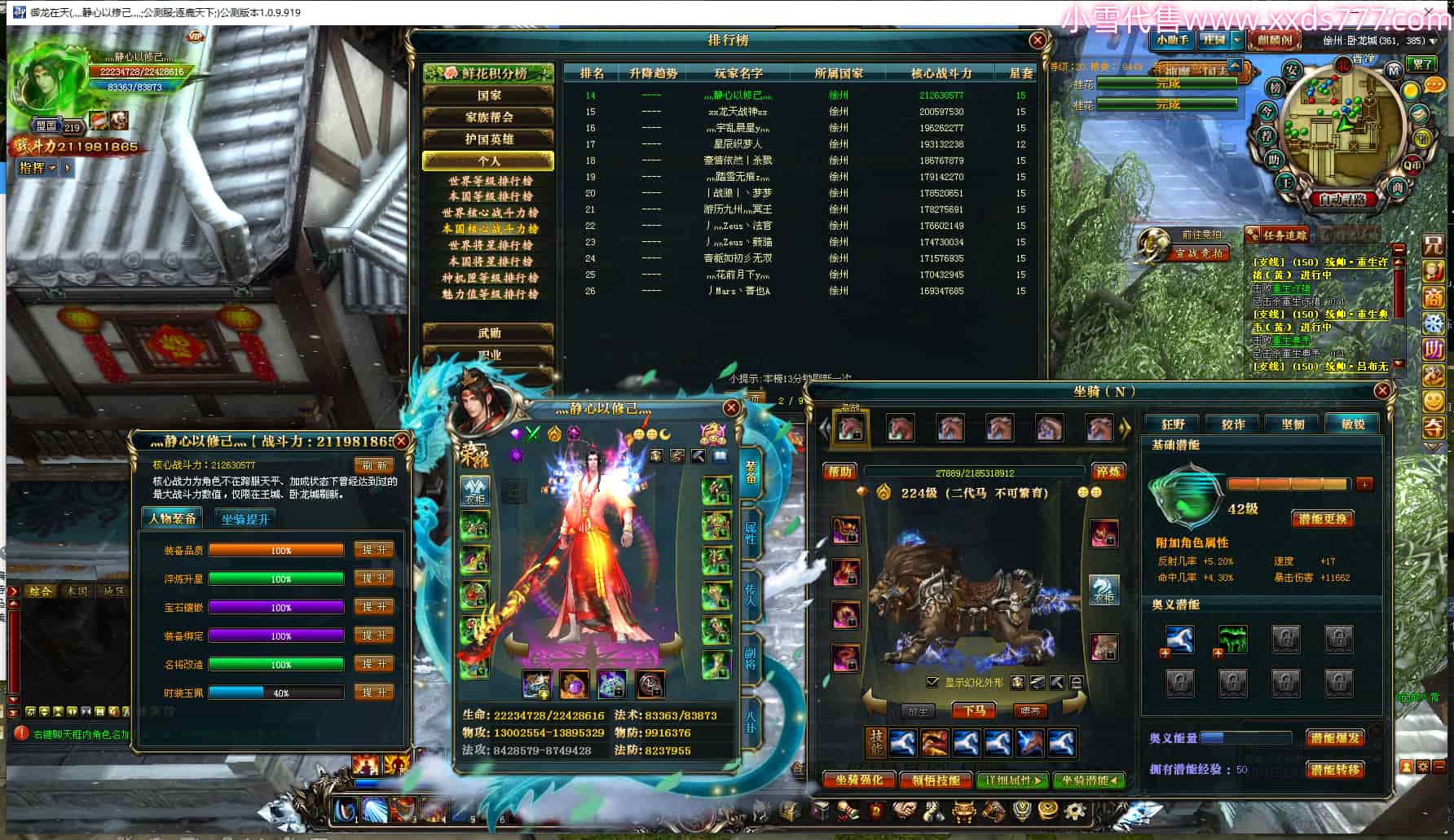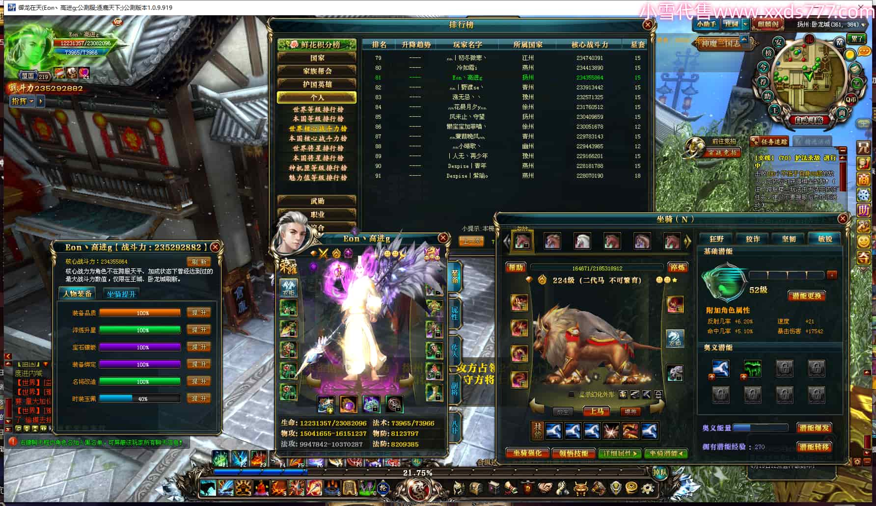 编号Z20153 灬丨武神se丶 逐鹿天下 豫州 世界排名10名 28939W战力 人物混沌极品橙18X 传人黄金精良橙18X(5件混沌) 副将黄金普通橙15X(7件18X) 马黄金极品橙14X(双潜能61级60级) 史诗紫17披风 人物星魂16级 传人星魂16级 副将星魂9级 马星魂16级 人物铭刻18级 人物点亮18星 马铭刻1件15级其余14级 点亮14星 人紫龙印 马绿龙印 六等单双属性神圣完美无暇石头 紫孔 已开4次永久18星套