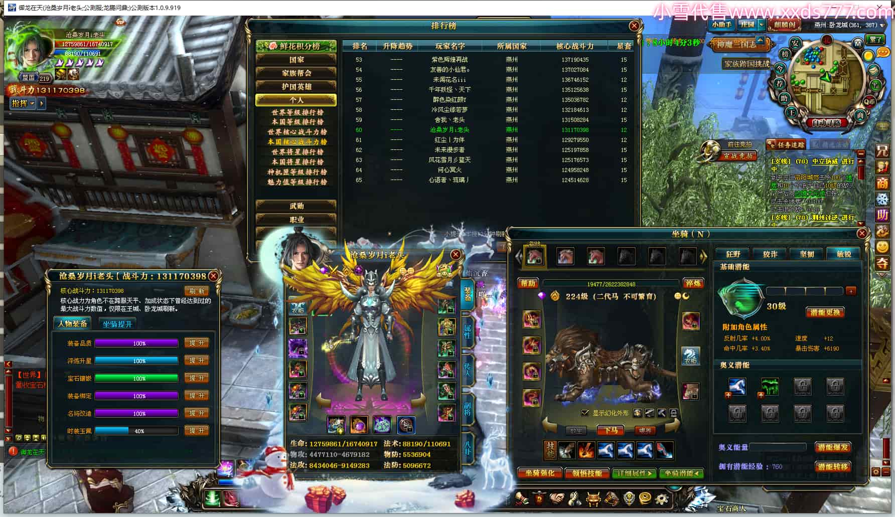 编号Q23573 攒钱换装备 群龙纵横 徐州 世界第12名 7856W战力 人物黄金极品橙18X(9件混沌) 马黄金精良橙13X 人物紫龙印 马绿龙印 6等单双属性石头 已开完永久15星 开了1次永久18星套 可以转移百分百安全