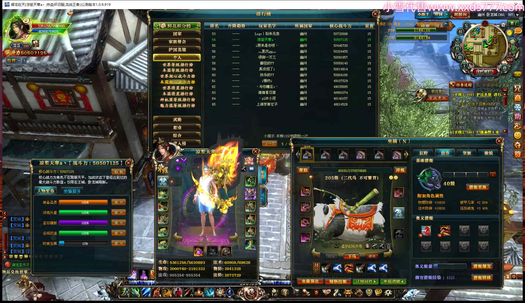 编号W23976 狱血丶破军 龙舞九州 幽州 200级 人物12X点星号 马9X 人物高淬83个 坐骑中淬5个