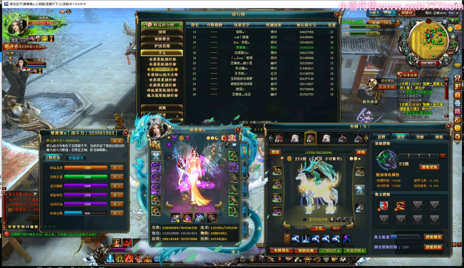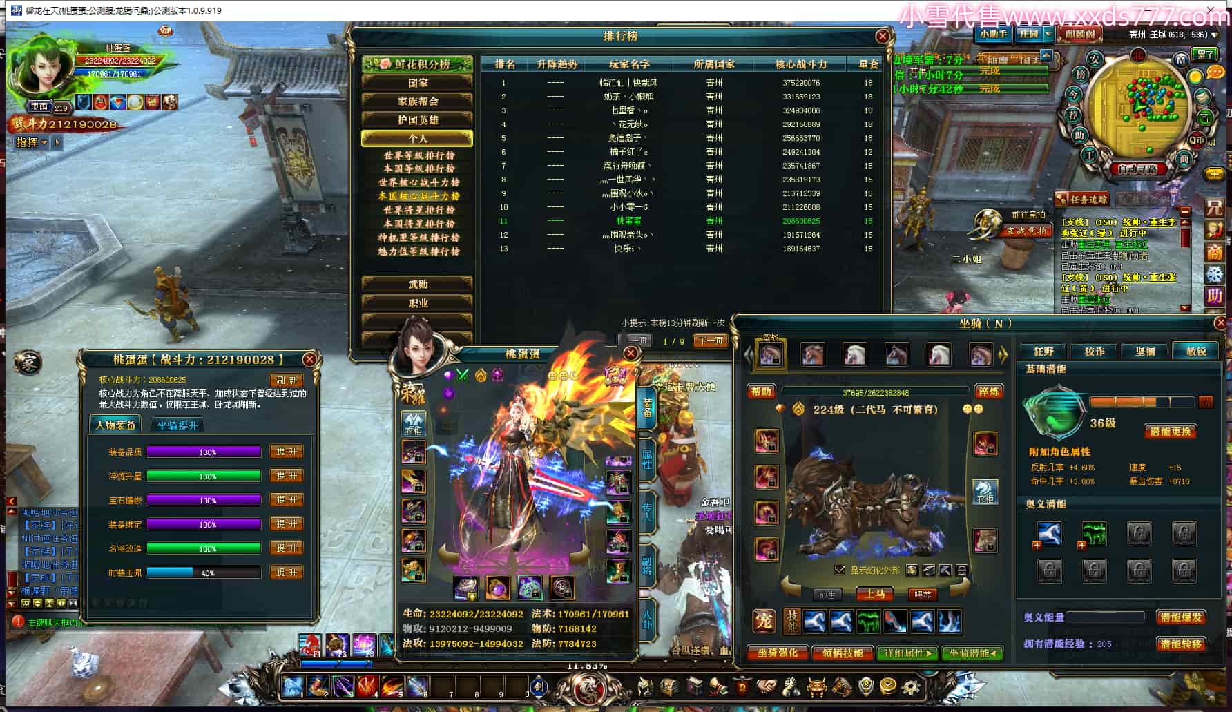 编号T21948 朗朗乾坤之仙 龙腾问鼎 益州 205级 人物12X点星号 铭刻12级 点亮12星 号内Q币2461个 人物高淬516个 坐骑中淬131个