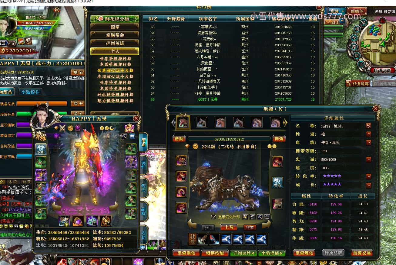 编号Z24490 涨无忌丶丶 逐鹿天下 豫州 世界排名第75名 24135W战力 人物黄金史诗紫15X(6件18X 7件混沌) 传人精良紫15X 副将精良紫12X 马史诗紫12X 极品紫15披风 人物星魂16级 传人16级 副将9级 马星魂16级 人物铭刻项链主手副手衣服18级头盔17鞋子16级其余15级 点亮项链主手副手衣服18星其余16星 马铭刻15级 点亮1件14星其余12星 人物绿龙印 马黄龙印(4件绿龙印) 五六等单双属性神圣完美无暇石头 绿孔