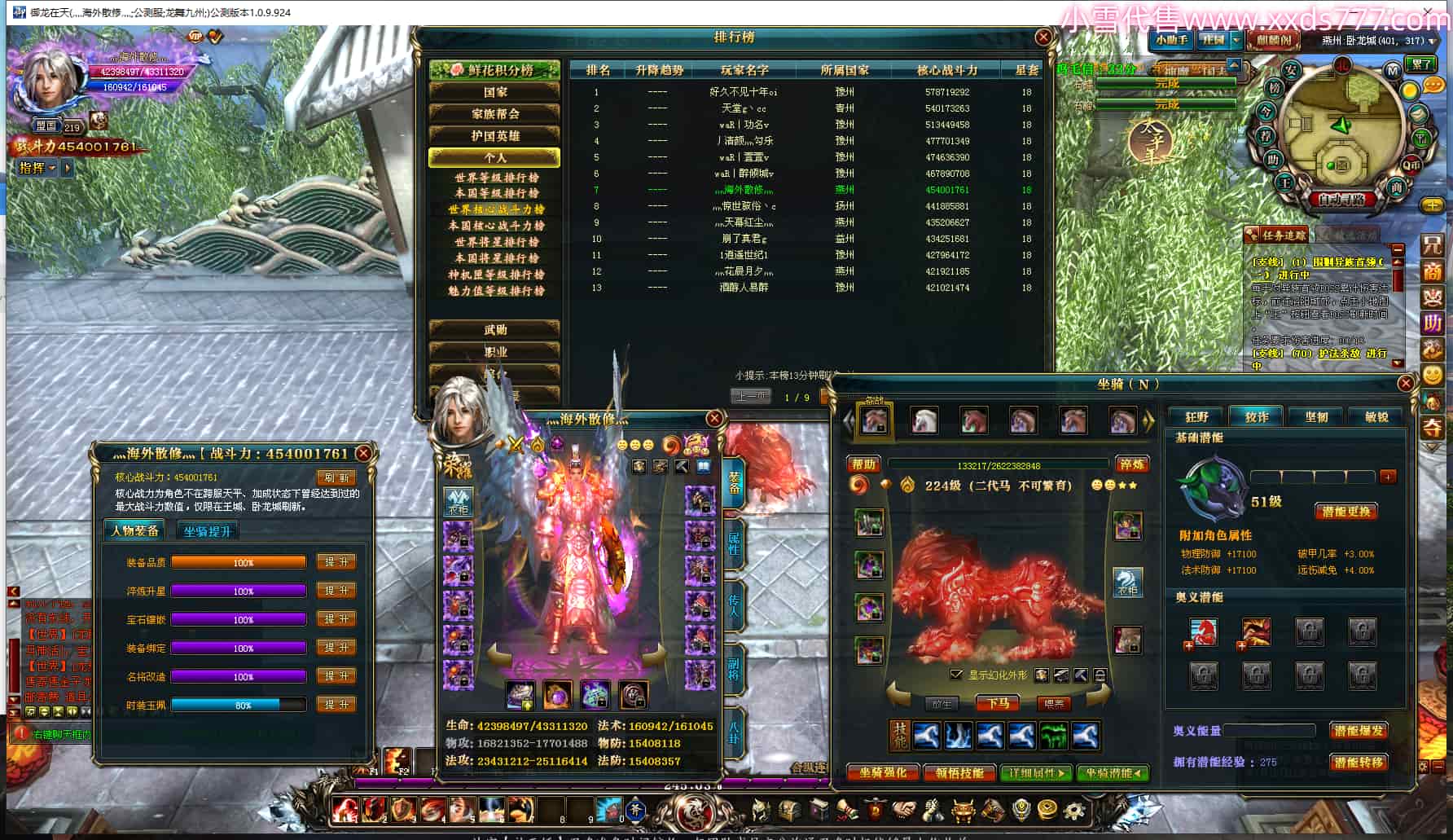 编号W24664 灬海外散修灬 龙舞九州 燕州 世界排名7名 45400W战力 人物混沌极品橙18X 传人黄金极品橙18X(8件混沌) 副将黄金普通15X(7件18X) 马混沌极品橙14X(双潜能52级41级) 极品橙16披风 人物星魂16级 传人星魂16级 副将星魂16级 马星魂16级 人物铭刻18级 点亮18星 马铭刻2件16级其余15级 点亮3件16星其余14星 人物紫龙印 马绿龙印 六等单双属性神圣石头 绿紫孔