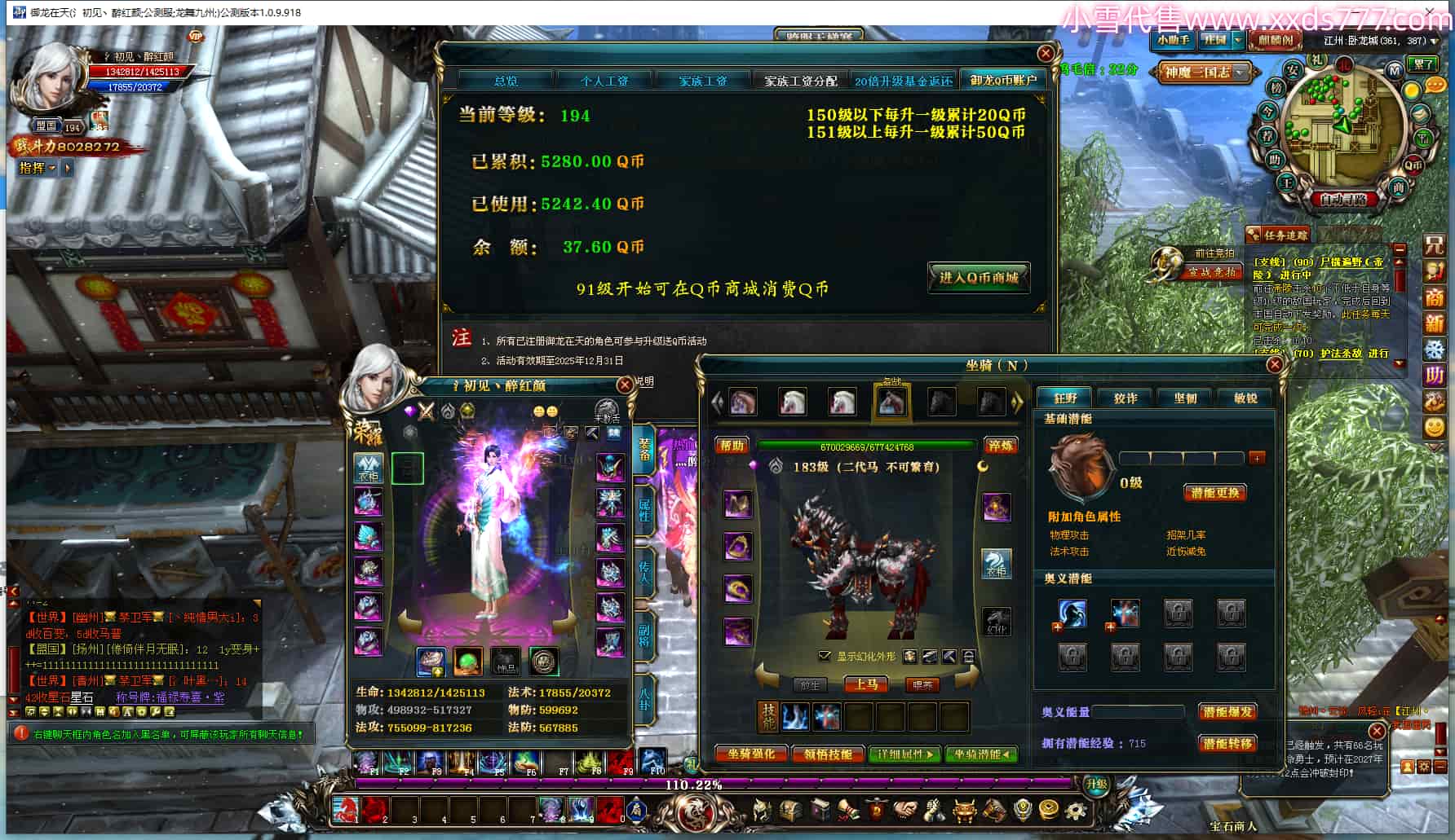 编号W24275 氵初见丶醉红颜 龙舞九州 燕州 194级 人物12X点星号 号内Q币37个 人物高淬14个 坐骑中淬34个