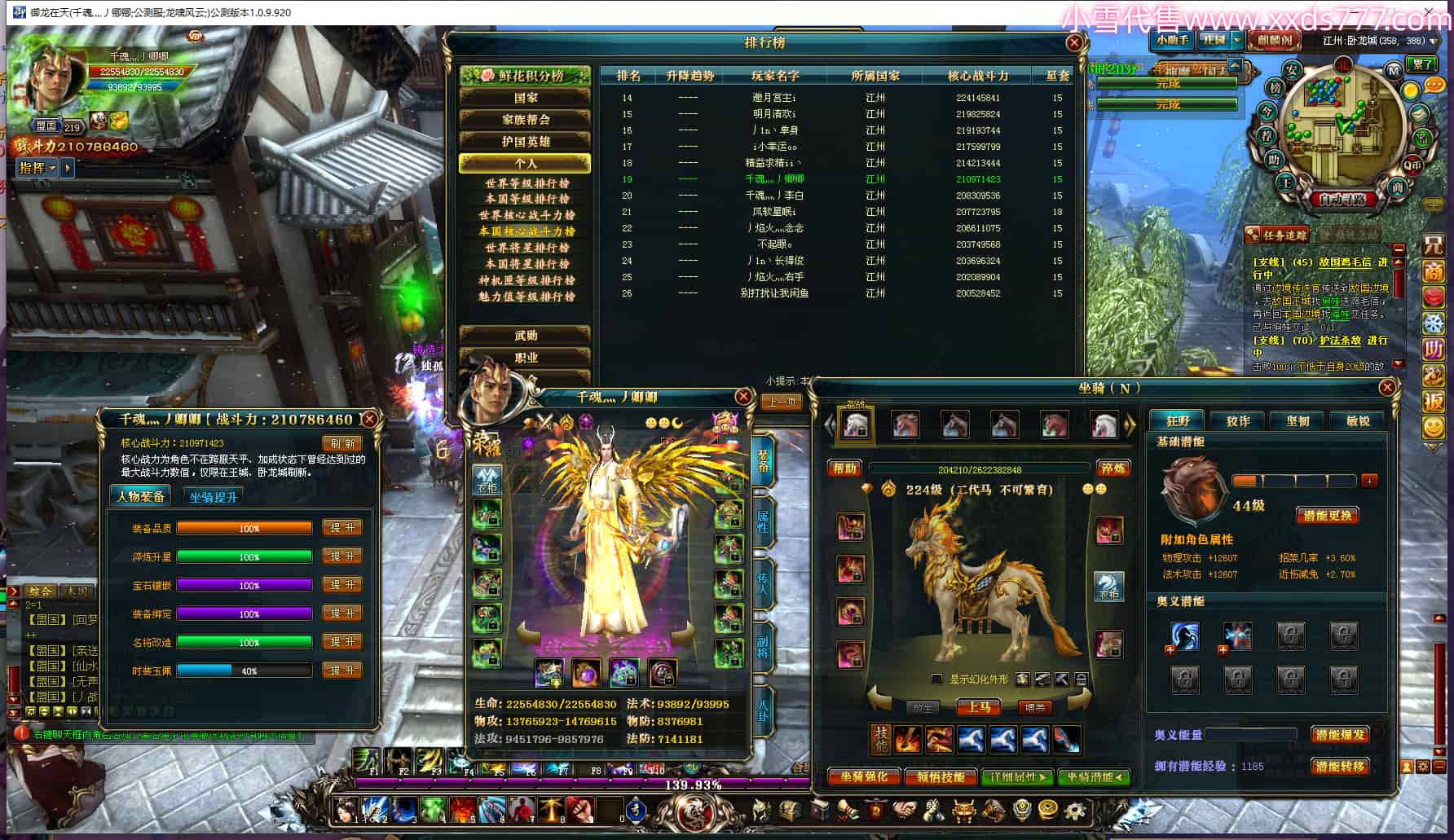 编号T24054 惊世骇俗ii 龙腾问鼎 幽州 本国排名第6名 21074W战力 人物黄金普通橙15X(9件混沌) 传人极品紫15X 副将史诗紫15X 马普通橙12X 人物星魂16级 传人12级 副将7级 马星魂15级 人物铭刻(主手/盔甲16级 剩下的15级) 点亮16星 马铭刻2件13级3件12级 点亮12星 人物绿龙印 马黄龙印 五六等单双属性神圣完美无瑕石头 绿黄孔