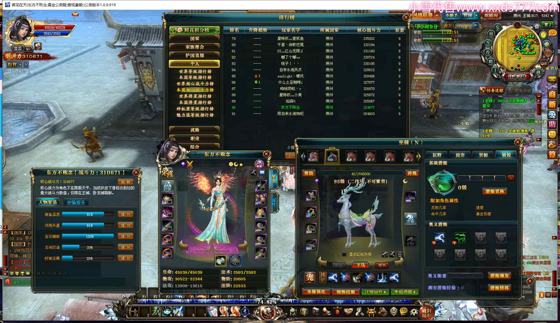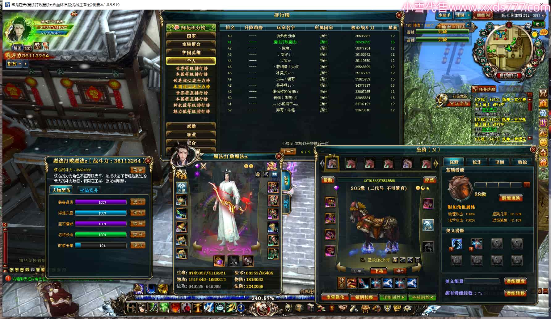 编号L24316 魔法打败魔法z 龙战王者 扬州 本国排名41名 3611W战力 人物黄金普通橙12X(3件15X4件混沌) 马史诗紫10X 人物绿龙印 马黄龙印 六等单双属性石头