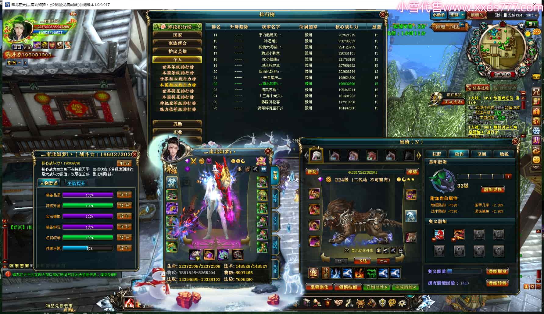 编号Z20469 Y烟花 逐鹿天下 幽州 等级190级点星号 人物12X 马9X 人物铭刻12级 点亮12星 马铭刻9级 点亮10X 人物高翠26级