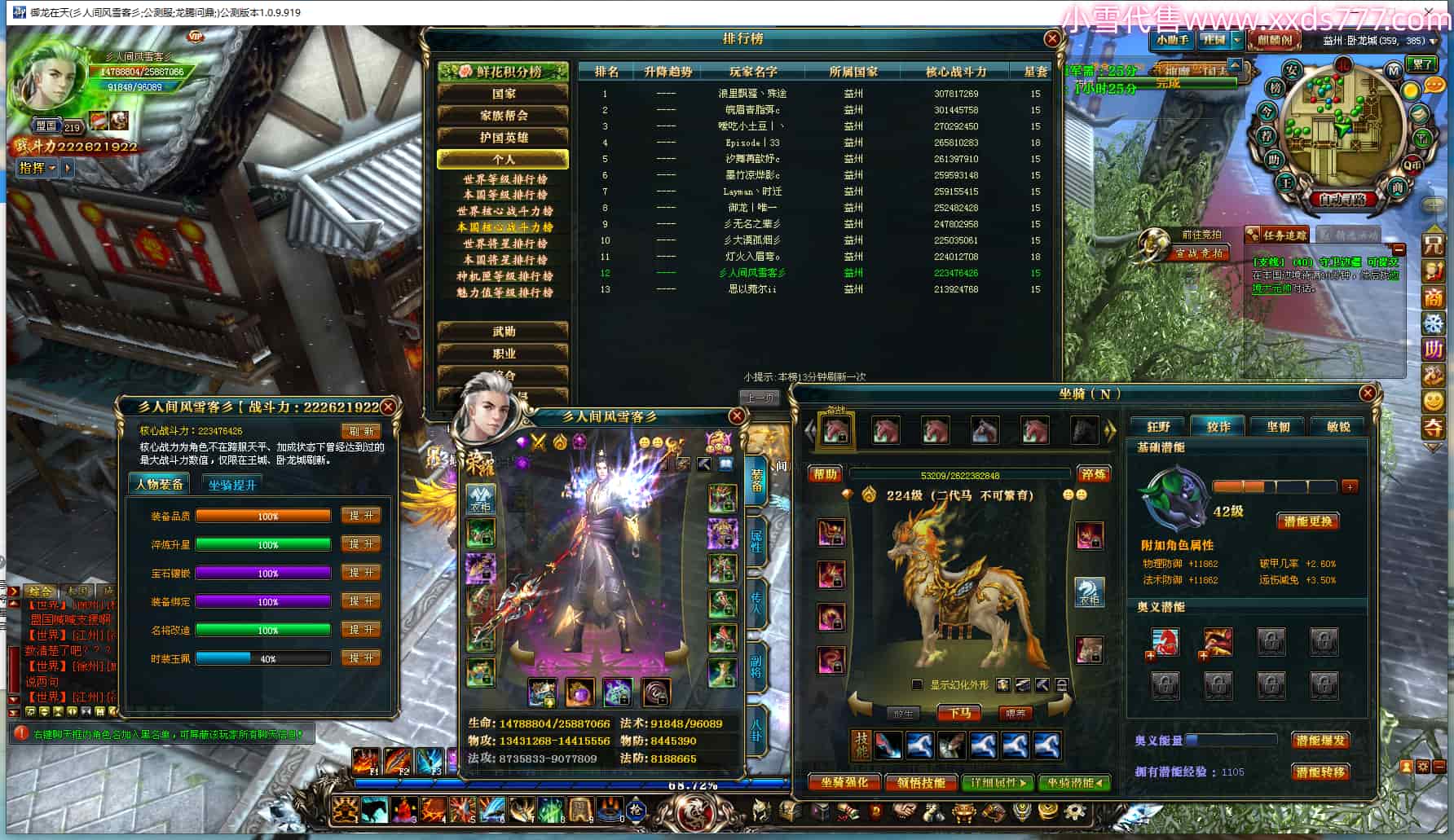 编号T24349 彡人间风雪客彡 龙腾问鼎 益州 本国排名第12名 22262W战力 人物黄金普通橙15X(7件混沌) 传人极品紫15X 副将史诗紫15X 马普通橙12X 极品紫15披风 人物星魂16级 传人星魂16级 副将星魂14级 马星魂15级 人物铭刻15级 点亮16星 马铭刻13级 点亮2件14星其余12星 人物绿龙印(2件紫龙印) 马黄龙印 六等单双属性神圣完美无瑕石头 黄绿孔 已开启永久15星套