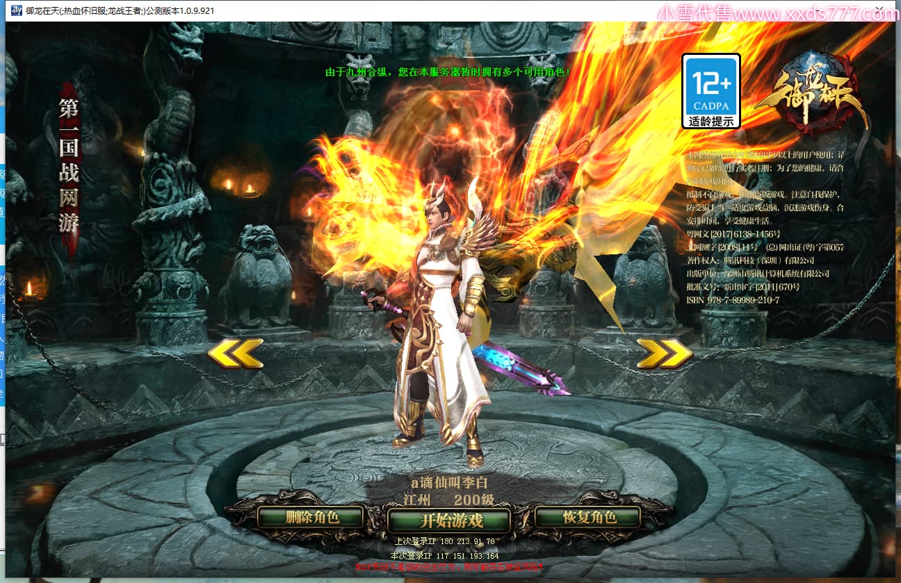 编号W23709 燕天神君 龙舞九州 徐州 等级200级 人物12X 号内Q币153个