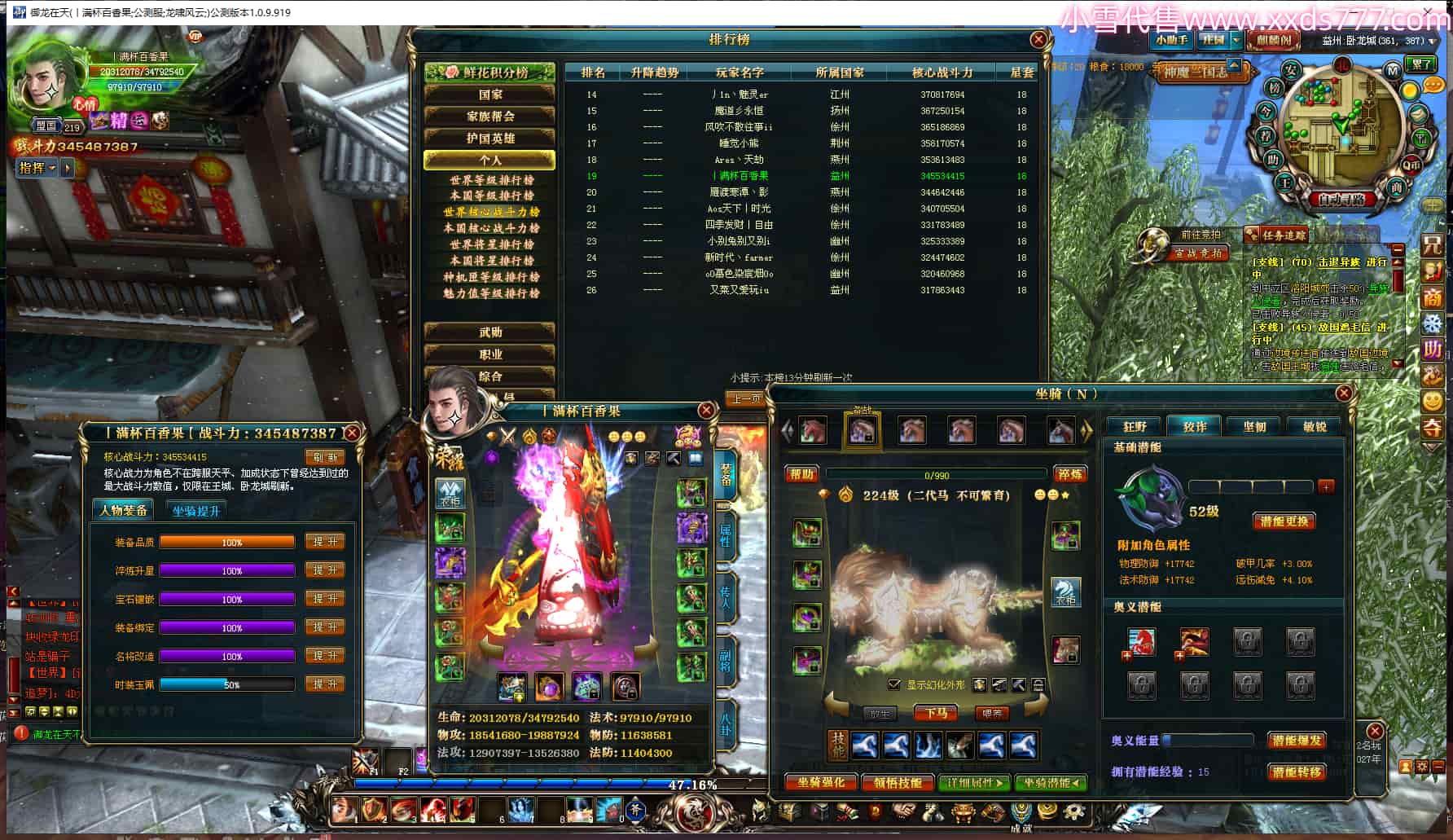 编号Z24326 Eon丶高进g 逐鹿天下 扬州 世界排名81名 23529W战力 人物黄金普通橙15X(1件18X1件17X8件混沌) 传人极品紫15X 副将史诗紫12X 马普通橙13X(双潜能52级46级) 极品紫16披风 人物星魂16级 传人星魂16级 副将星魂6级 马星魂16级 人物铭刻1件17级其余16级 人物点亮16星 马铭刻13级 点亮14星 人绿龙印 马黄龙印 六等单双属性神圣完美无暇石头 黄绿孔 已开完永久15星套