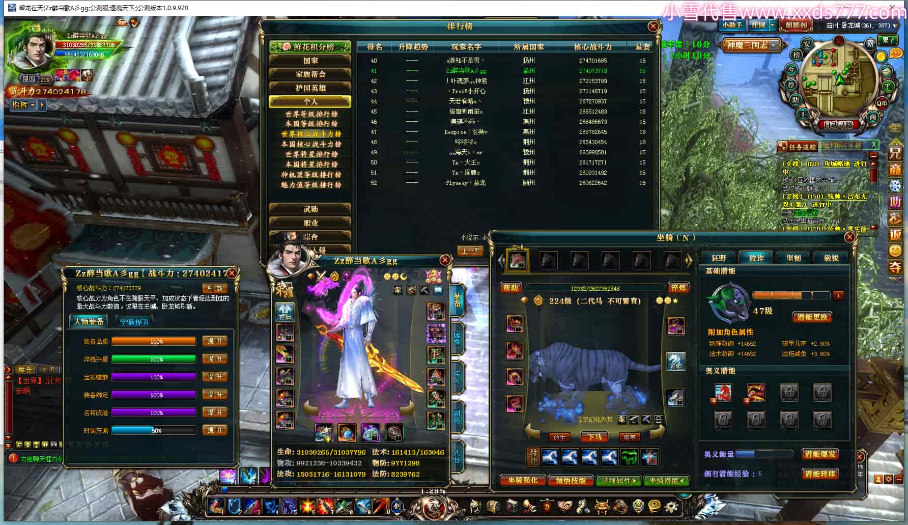 编号Z24434 Zz醉当歌A彡gg 逐鹿天下 益州 世界排名41名 27402W战力 人物黄金加强橙16X(2件18X10件混沌) 传人黄金史诗紫15X 副将极品紫12X 马加强橙13X 极品紫15披风 人物星魂16级 传人星魂15级 副将星魂6级 马星魂16级 人物铭刻2件18级6件16级其余15级 点亮1件18星其余16星 马铭刻13级 点亮12星 人绿龙印(1件紫龙印) 马黄龙印 六等单双属性神圣完美无暇石头 黄绿孔 已开完永久15星套