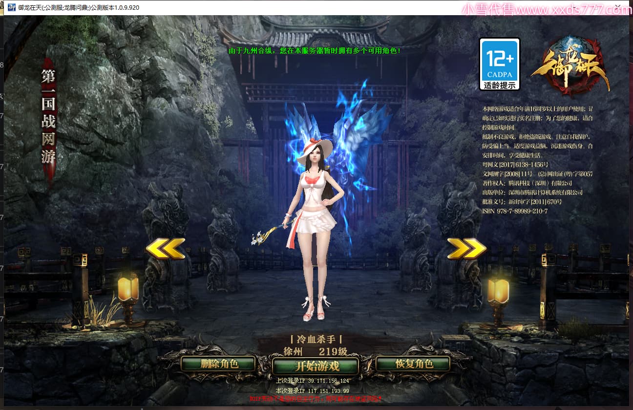 编号X24451 牛13克拉斯 龙啸风云 荆州 190级 人物加强紫12X(1件17X1件15X) 马加强紫8X(4件9X) 号内Q币20个 人物高淬53个