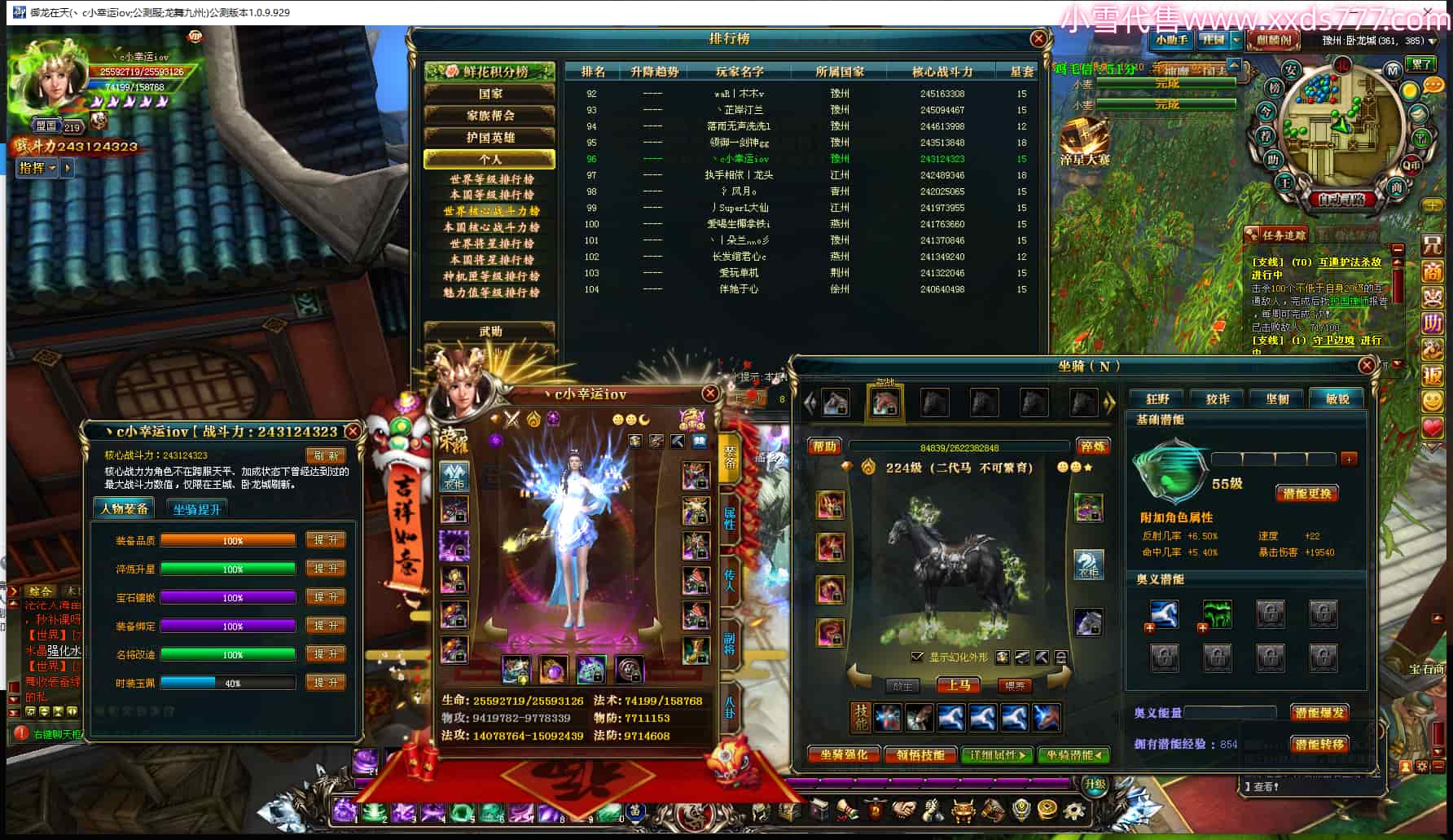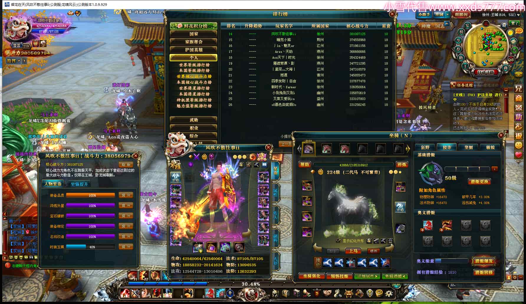 编号W25066 丶c小幸运iov 龙舞九州 豫州 世界排名96名 24312W战力 人物黄金极品橙15X(7件混沌) 传人史诗紫15X 副将精良紫15X 马普通橙13X(双潜能55级53级) 极品紫16披风 人物星魂16级 传人星魂16级 副将星魂6级 马星魂16级 人物铭刻2件16级其余15级 点亮16星 马铭刻3件14级其余13级 点亮14星 人物绿龙印(1件紫龙印) 马黄龙印 六等单双属性神圣完美无暇石头 黄绿孔 已开启永久15星套