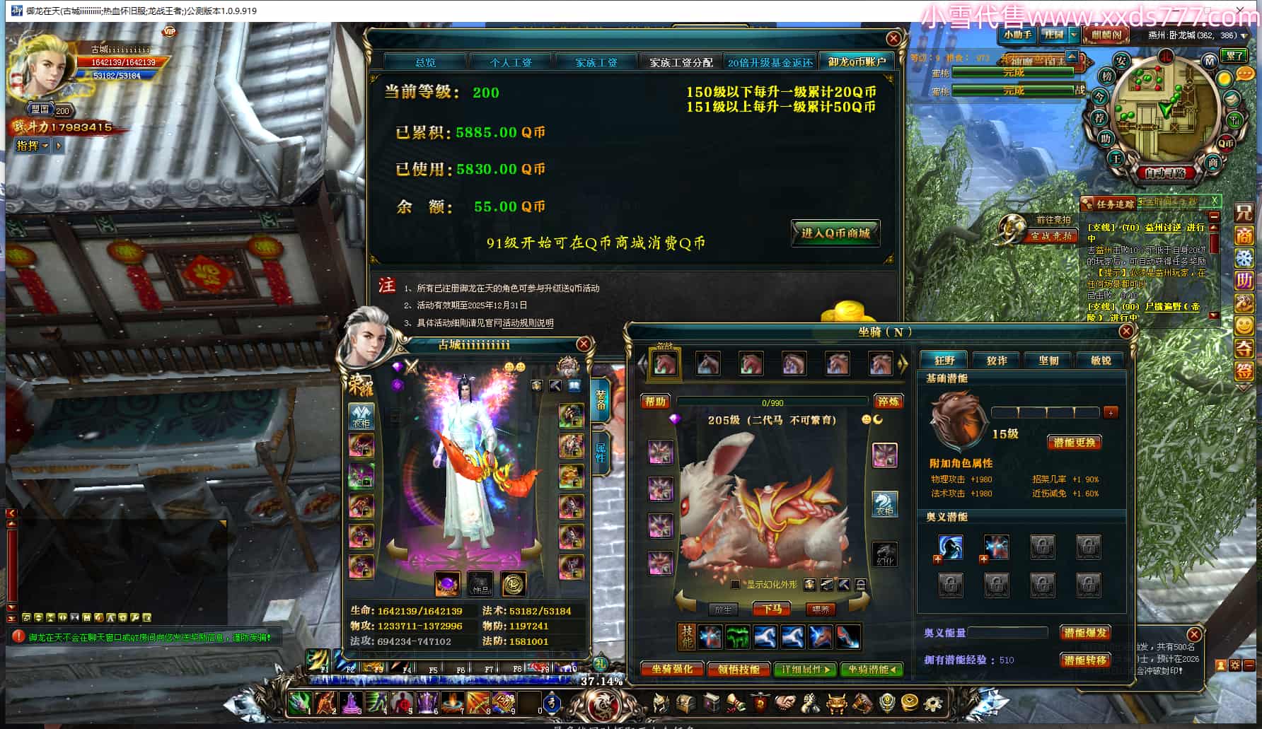 编号Q23038 好运连连北港哟 飞龙在天 益州 90级 29W战力 人物普通紫11X(4件12X) 马6X 号内Q币1902个