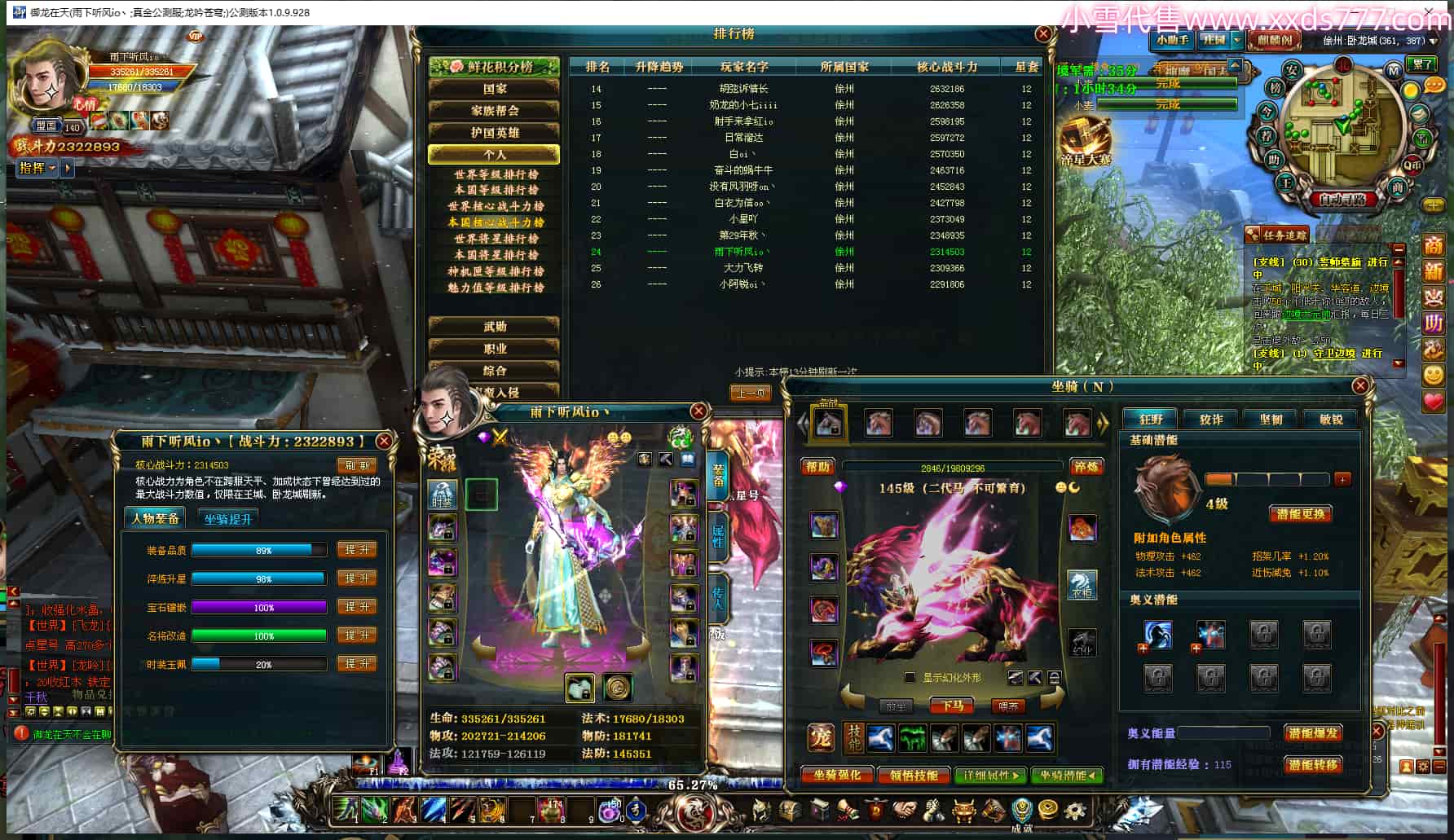 编号L25060 雨下听风io丶 龙吟苍穹 徐州 本国排名24名 232W战力 人物加强紫12X 马加强紫9X 六等单双属性石头 号内Q币185个