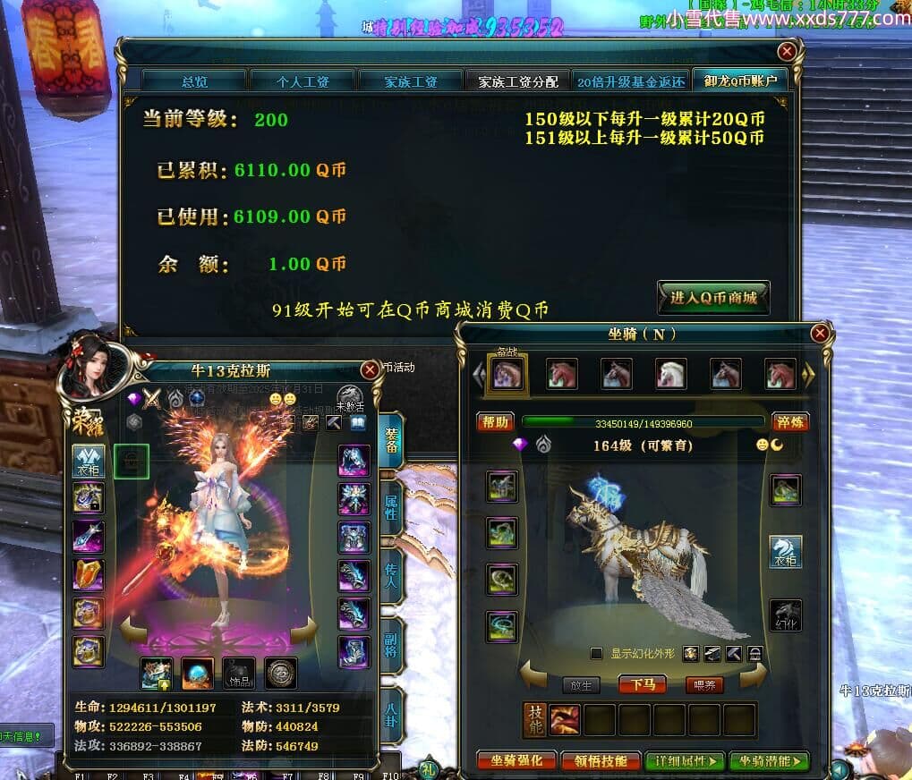 编号X24451 牛13克拉斯 龙啸风云 荆州 190级 人物加强紫12X(1件17X1件15X) 马加强紫9X 号内Q币20个 人物高淬53个