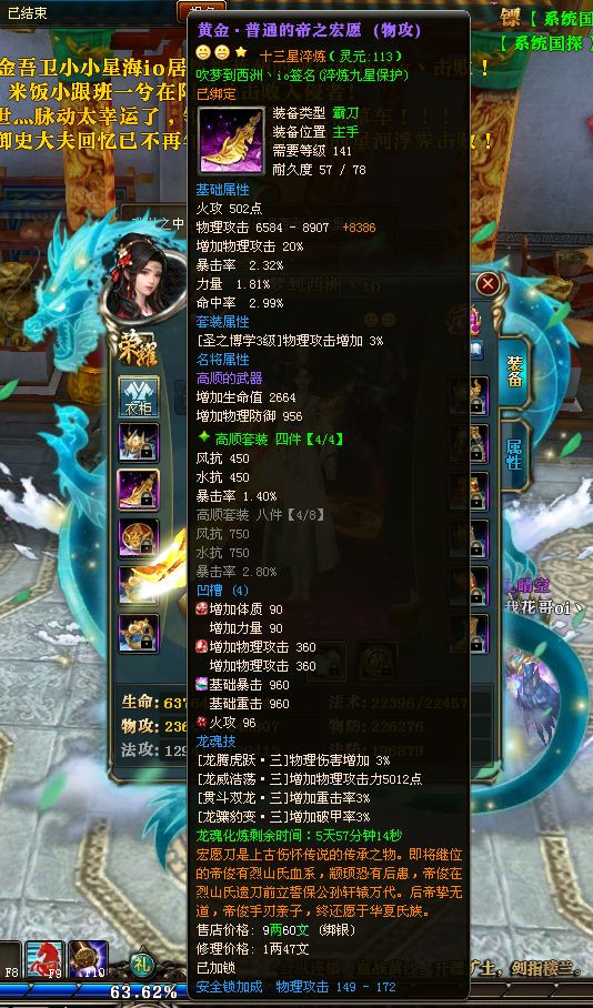 编号Q22070 吹梦到西洲丶io 潜龙九霄 青州 149级 本国排名31名 420W战力 人物黄金普通紫12X 马加强紫9X 六等单双属性石头 号内Q币59个 可以转移百分百安全