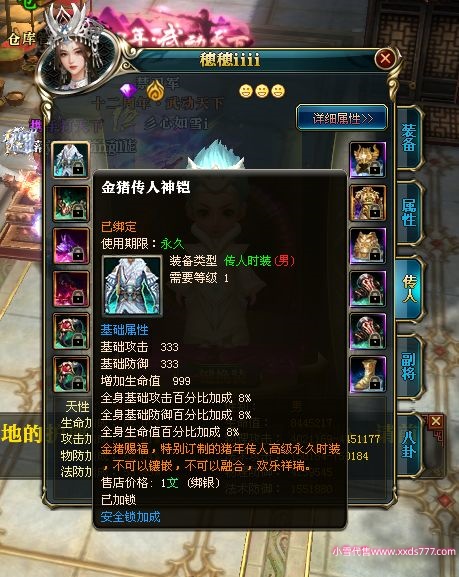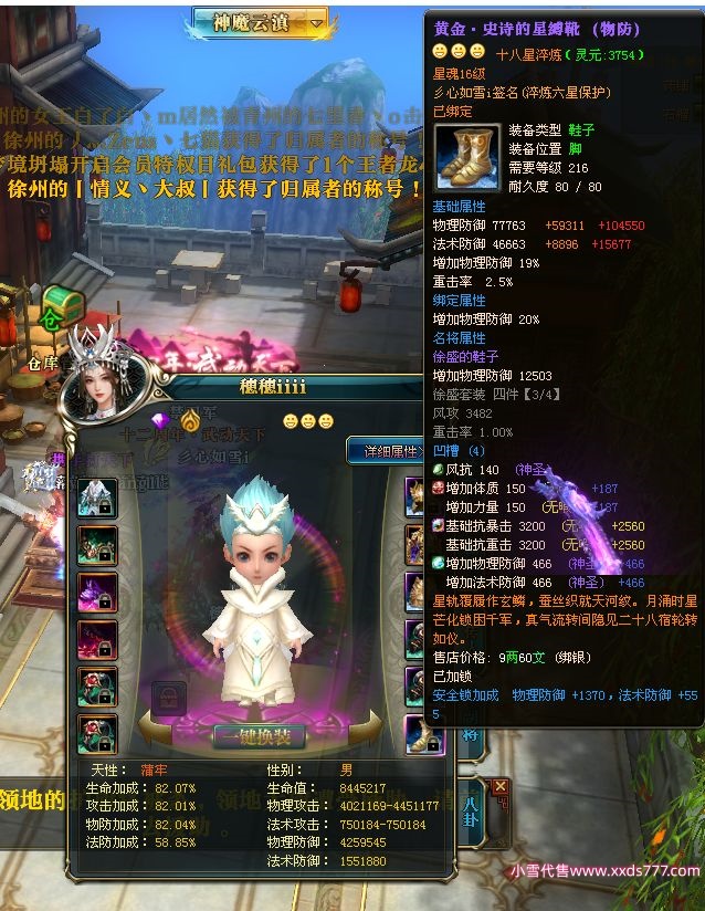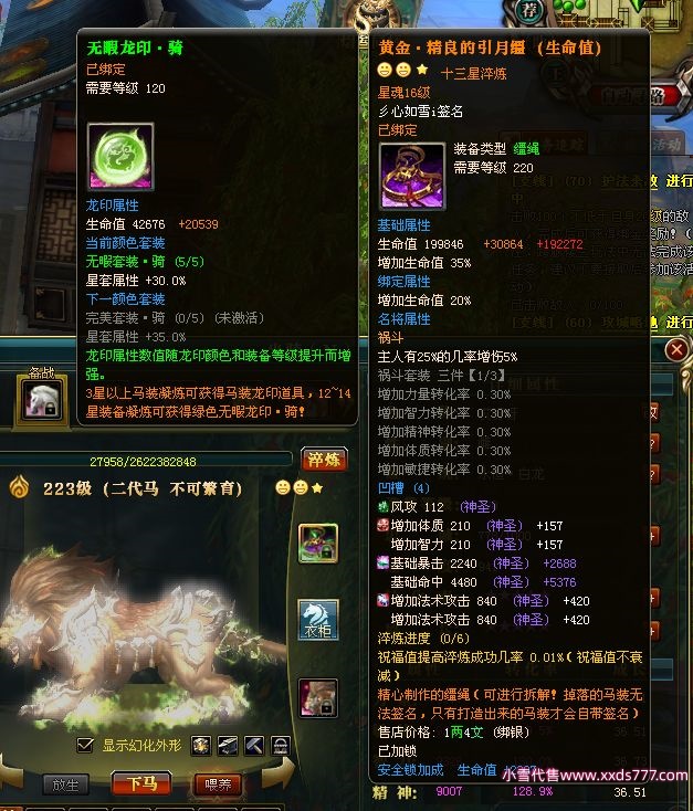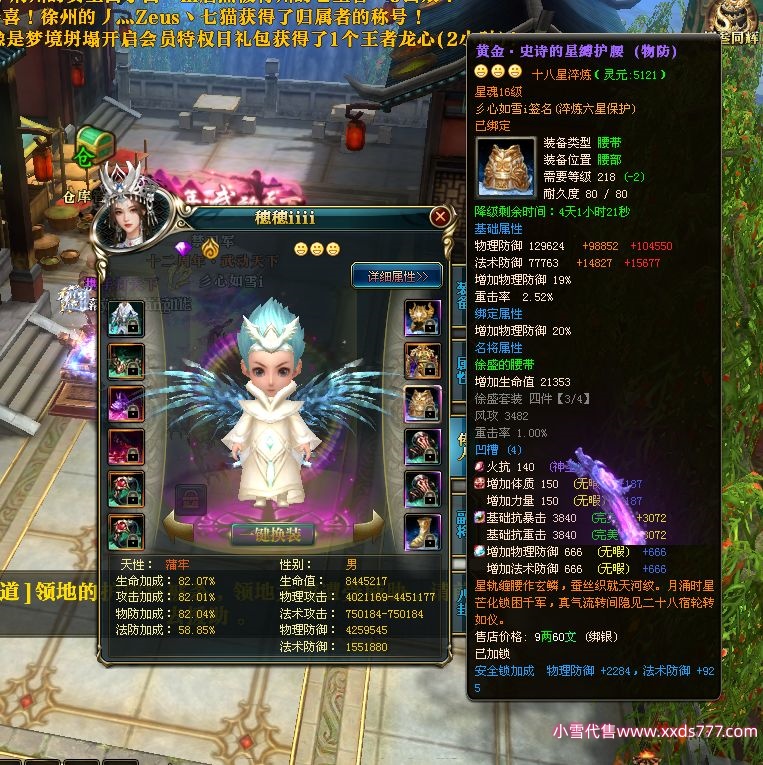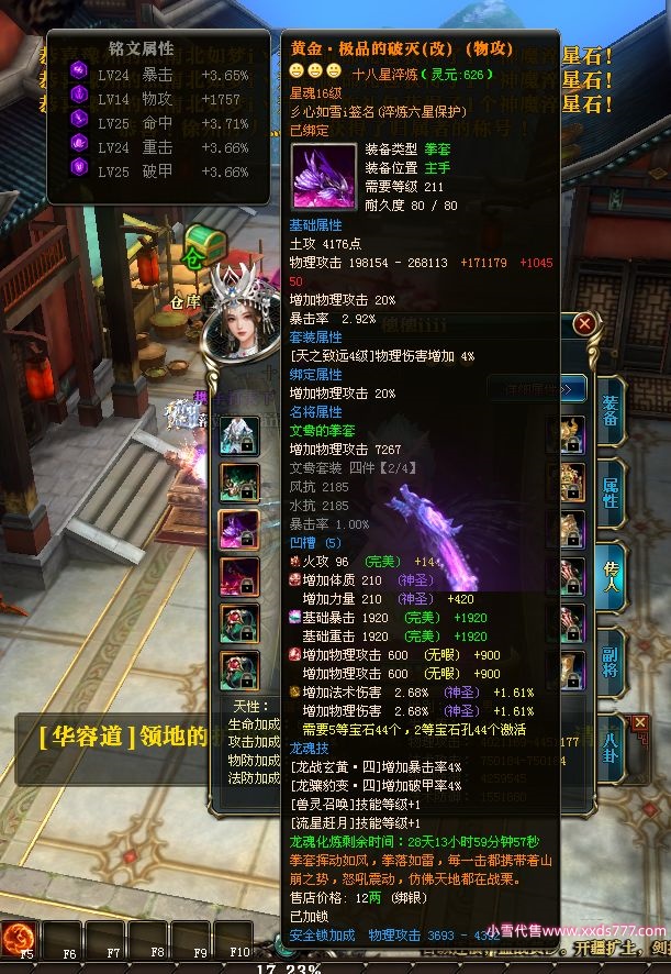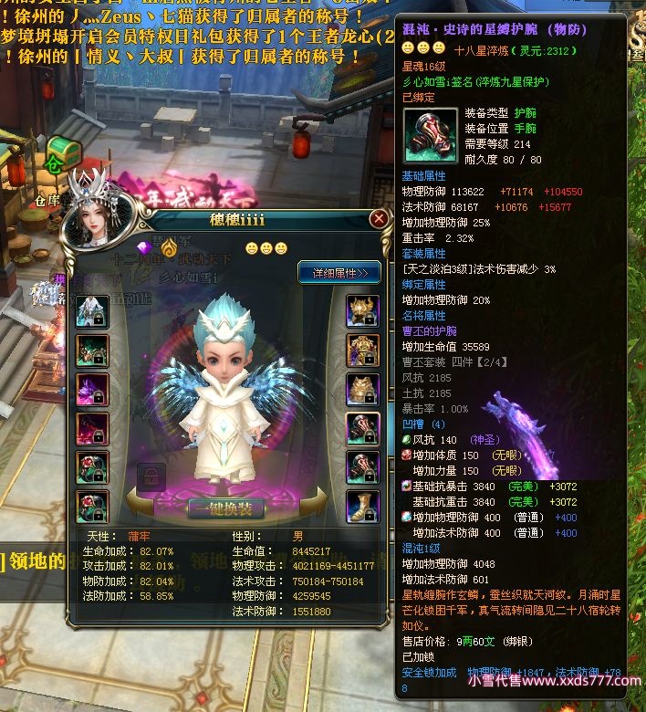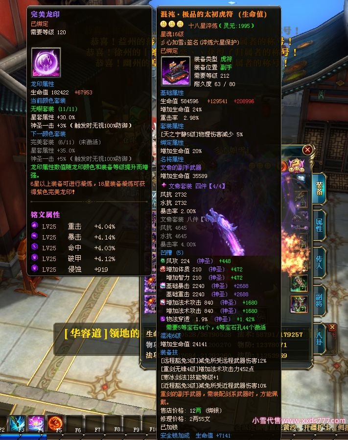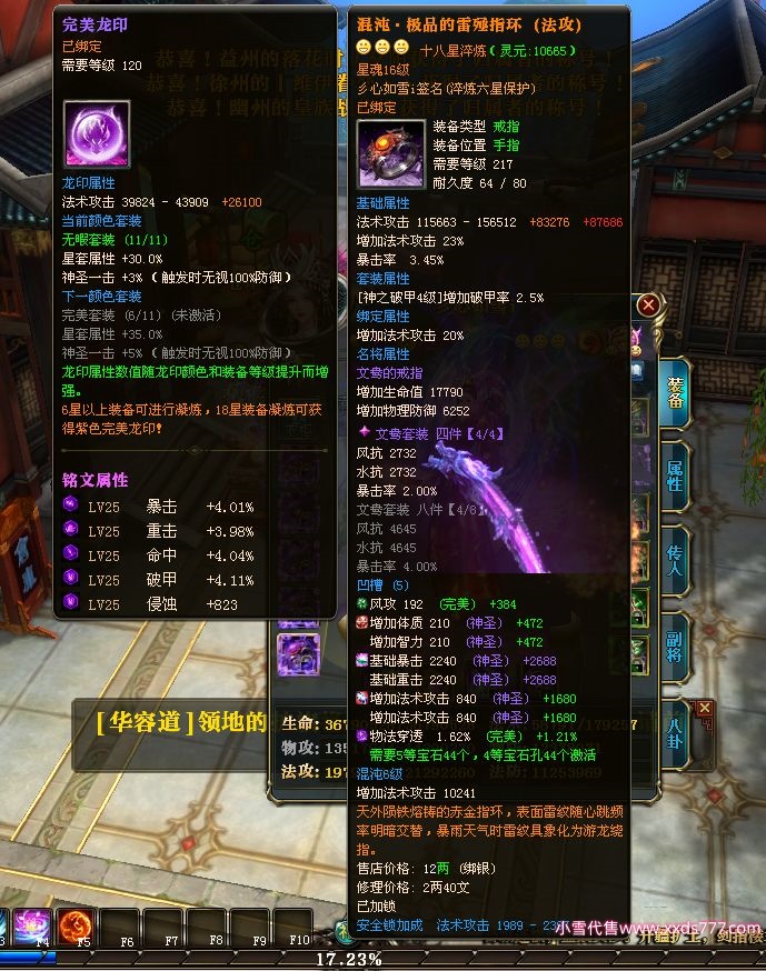 编号T22544 彡心如雪i 龙腾问鼎 江州 世界排名25名 36375W战力 人物混沌极品橙18X 传人黄金史诗紫18X(6件混沌) 副将史诗紫12X 马黄金极品橙13X(双潜能74级63级) 极品紫17披风 人物星魂16级 传人星魂16级 副将星魂6级 马星魂16级 人物铭刻18级 人物点亮18星 马铭刻13级 点亮14星 人物绿龙印(6件紫龙印) 马绿龙印 六等单双属性神圣完美石头 绿紫孔 已开1次永久18星套 可以转移百分百安全