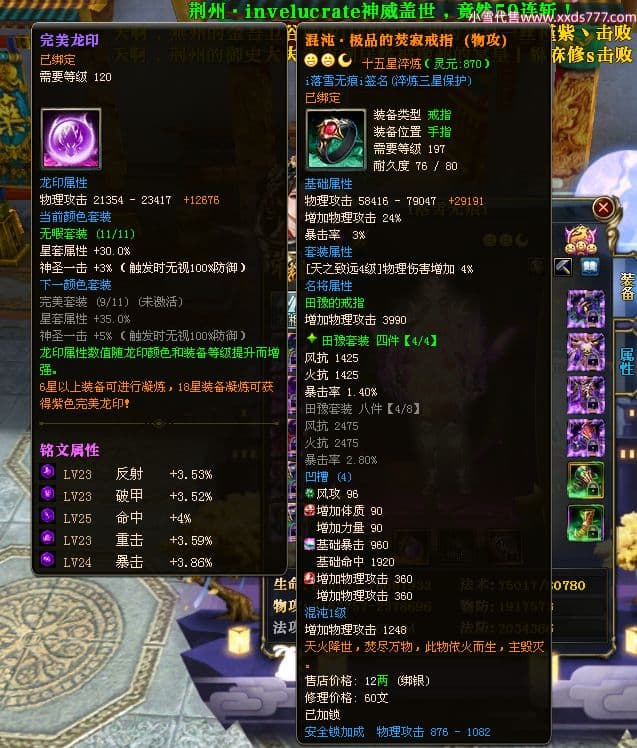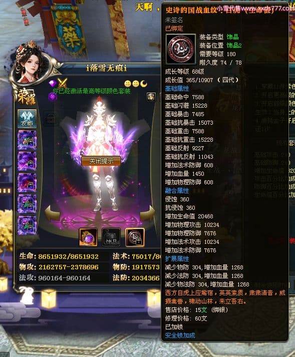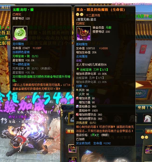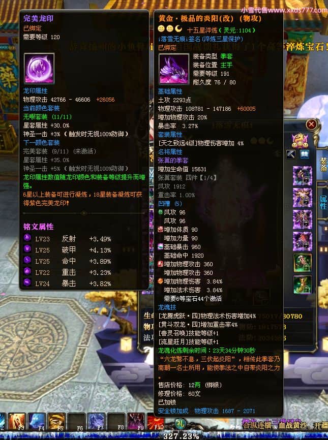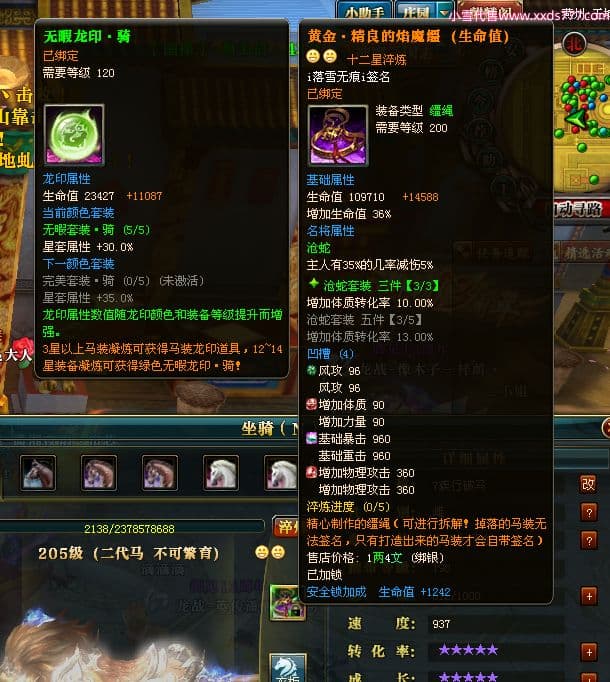编号L23228 i落雪无痕i 龙战王者 燕州 世界排名48名 5789W战力 人物黄金极品橙15X(8件混沌) 马黄金精良橙12X 人物绿龙印(9件紫龙印) 马绿龙印 六等单双属性石头 已开8次永久15星套
