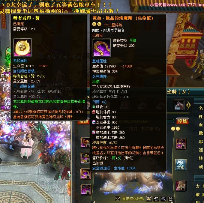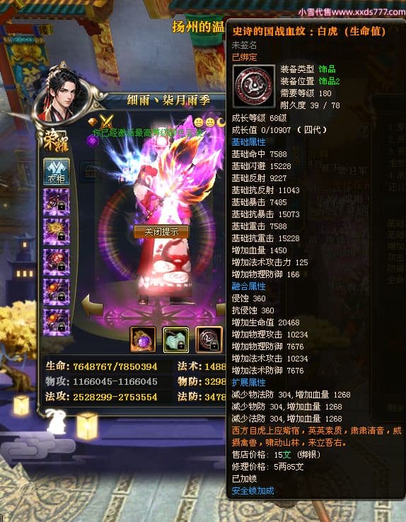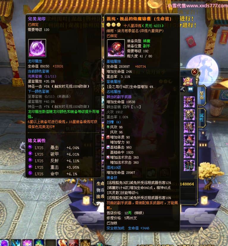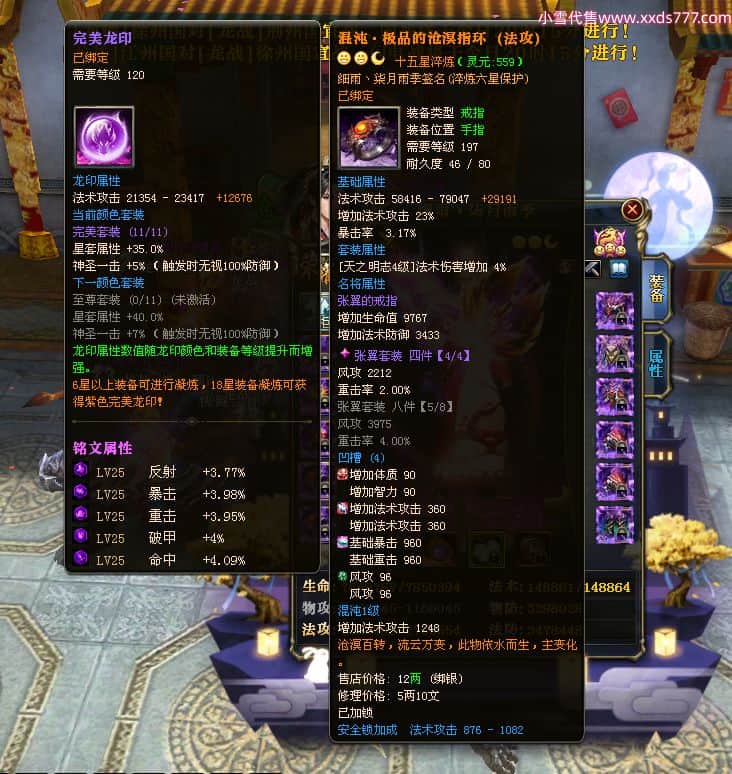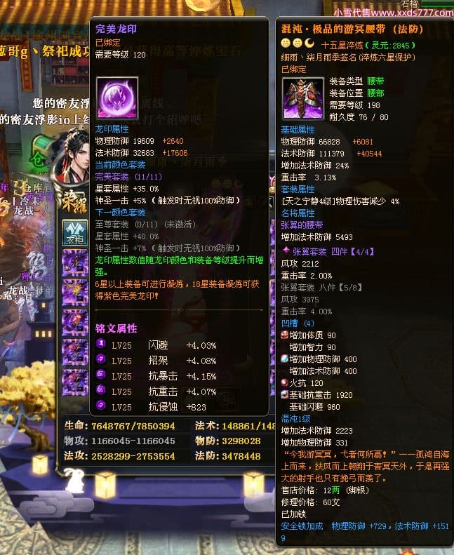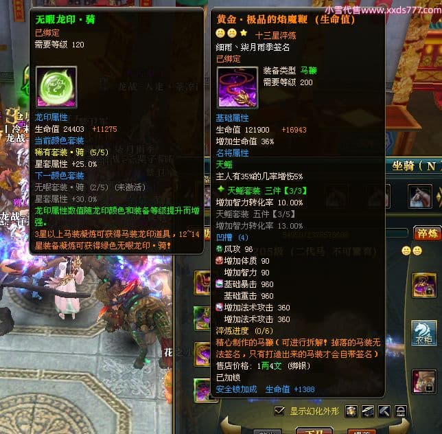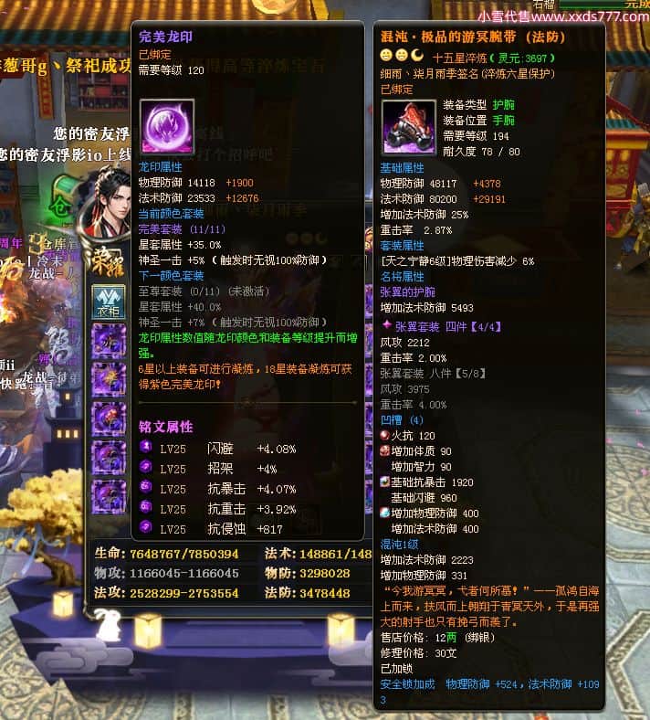 编号L23247 细雨丶柒月雨季 龙战王者 燕州 世界排名31名 6965W战力 人物黄金极品橙15X(3件18X9件混沌) 马黄金极品橙12X(双潜能74级67级) 人物紫龙印 马黄龙印(2件绿龙印) 六等单双属性石头 已开2次永久15星套 可以转移百分百安全