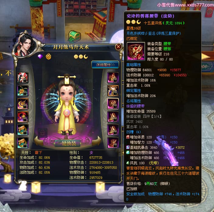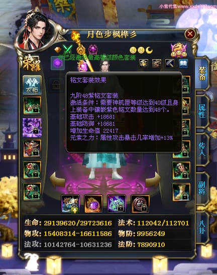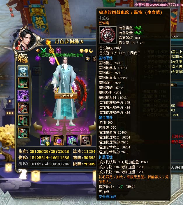 编号Z23256 月色步枫桦彡 逐鹿天下 益州 世界排名35名 26855W战力 人物黄金加强橙16X(2件18X8件混沌) 传人史诗紫15X 副将极品紫15X 马黄金加强橙12X(双潜能50级24级) 极品紫16披风 人物星魂16级 传人星魂16级 副将星魂9级 马星魂16级 人物铭刻3件18级其余16级 人物点亮1件18星其余16星 马铭刻15级 点亮2件14星其余12星 人物绿龙印(1件紫龙印) 马绿龙印 六等单双属性神圣完美优秀石头 黄绿孔