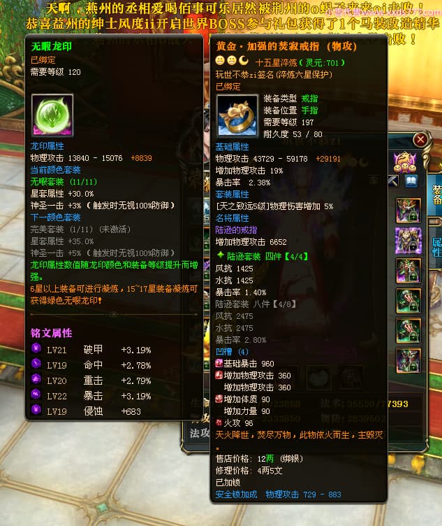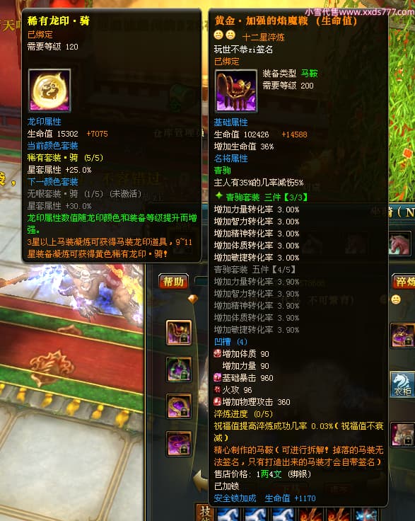 编号L23276 玩世不恭zi 龙战王者 幽州 本国排名37名 5184W战力 人物黄金加强橙15X(7件混沌) 马黄金普通橙12X 人物绿龙印(1件紫龙印) 马黄龙印(1件绿龙印) 六等单双属性石头 可以转移百分百安全
