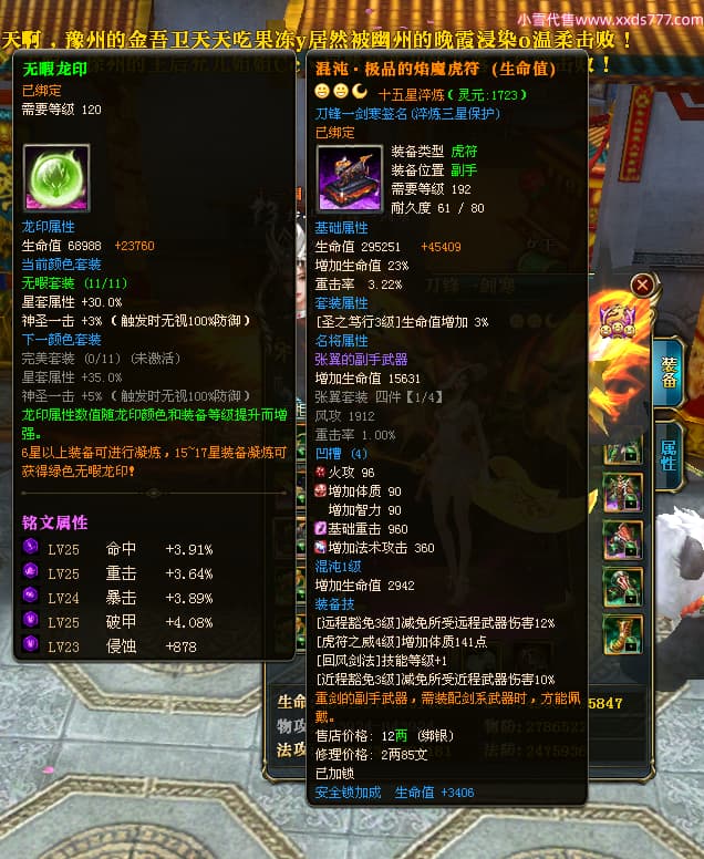 编号L23328 刀锋一剑寒 龙战王者 荆州 本国排名12名 5216W战力 人物黄金极品橙15X(5件混沌) 马精良橙12X 人物绿龙印 马黄龙印 六等单双属性石头 已开启永久15星套 可以转移百分百安全