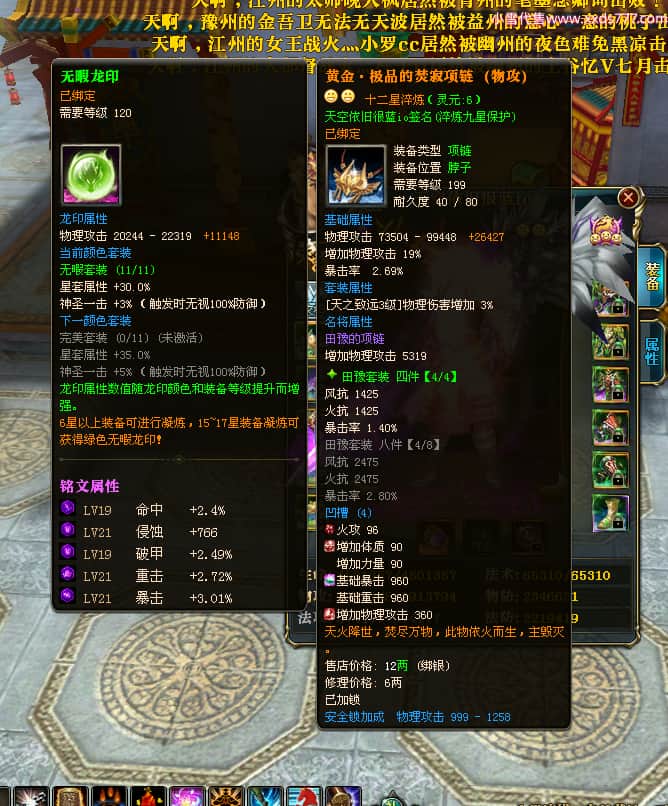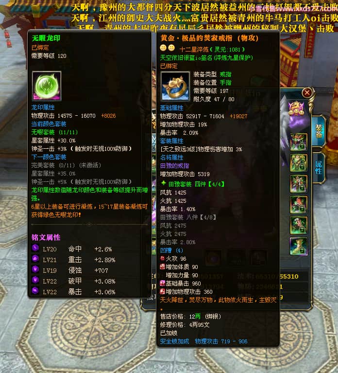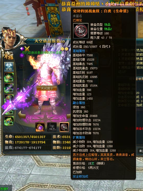 编号L23355 天空依旧很蓝io 龙战王者 徐州 本国排名22名 4075W战力 人物黄金极品橙12X(4件15X5件混沌) 马加强橙10X 人物绿龙印 马黄龙印 六等单双属性石头 已开启永久15星套 可以转移百分百安全 下阶段十五全部砸好