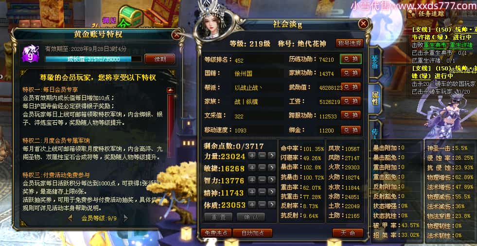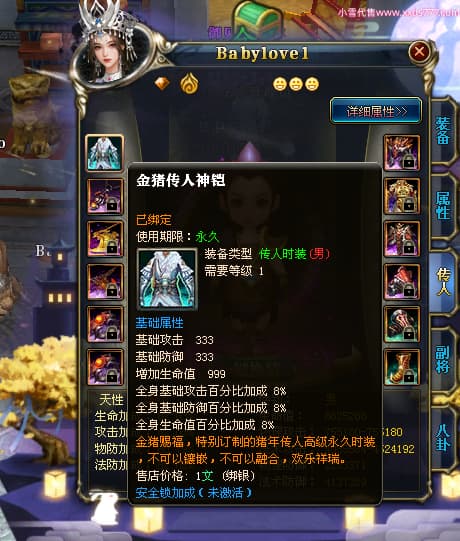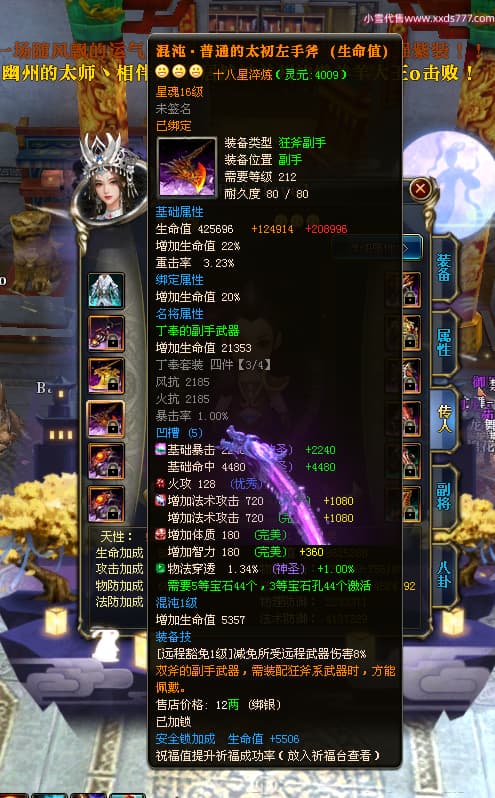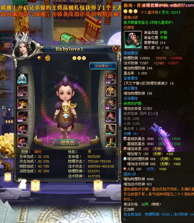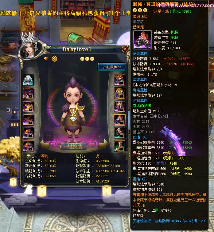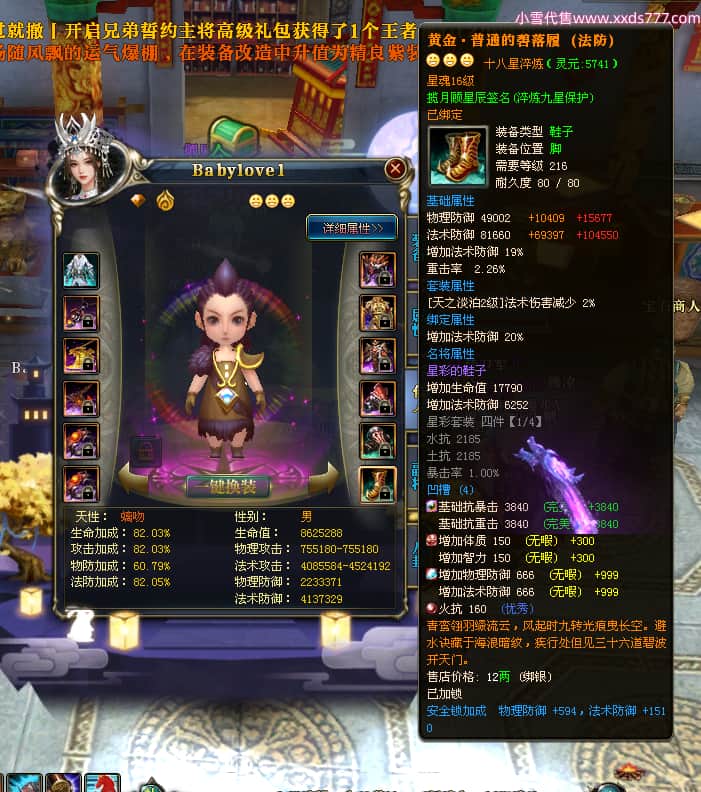 编号W23372 社会淡g 龙舞九州 徐州 世界排名14名 39298W战力 人物混沌极品橙18X 传人黄金普通橙18X(8件混沌) 副将黄金普通橙15X 马黄金极品橙13X(双潜能50级45级) 史诗紫16披风 人物星魂16级 传人星魂16级 副将星魂13级 马星魂16级 人物铭刻18级 点亮18星 马铭刻15级 点亮14星 人物紫龙印 马绿龙印 六等单双属性神圣石头 绿紫孔 可以转移百分百安全