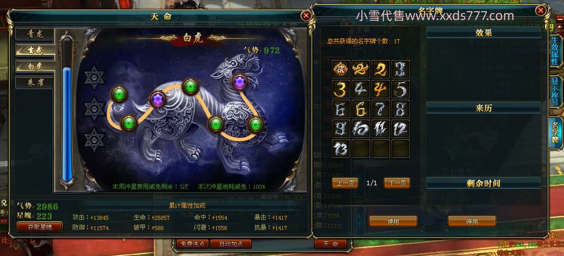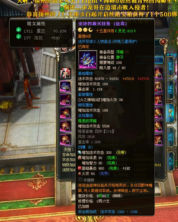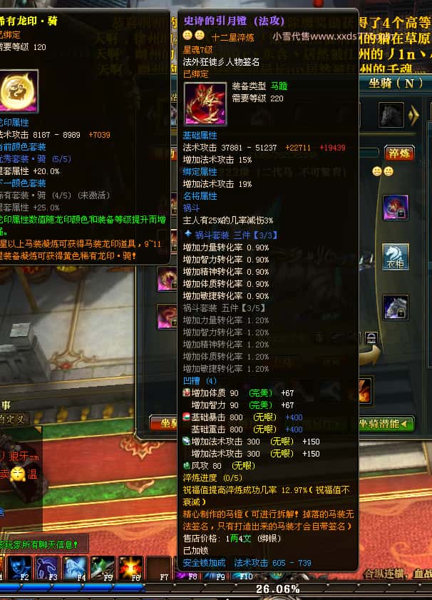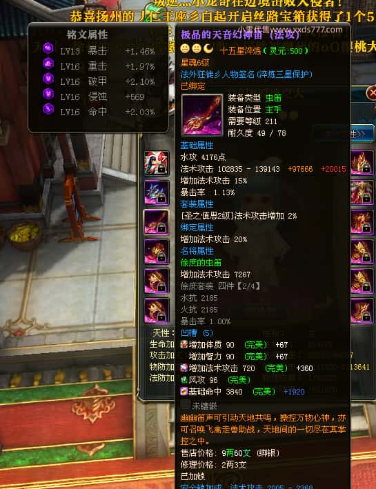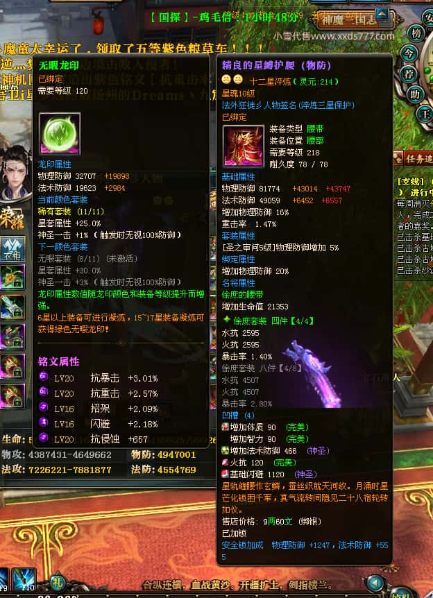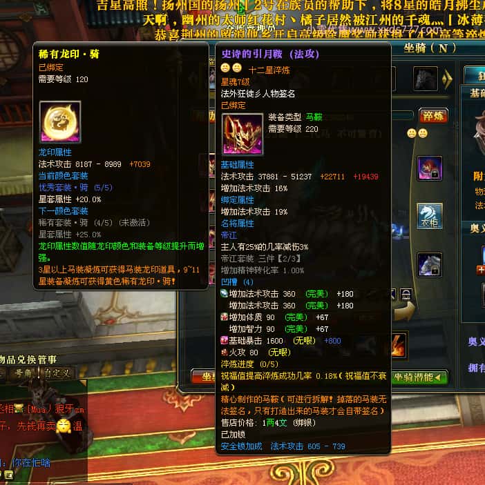 编号X23395 法外狂徒彡人物 龙啸风云 燕子 10247W战力 人物12X 传人精良12X 副将精良12X 马极品紫12X 人物铭刻12 点亮项链主手戒指衣服14星其他12星 人物星魂10 传人星魂6级 马星魂6级 人物绿龙印 马黄龙印
