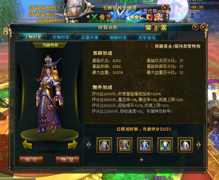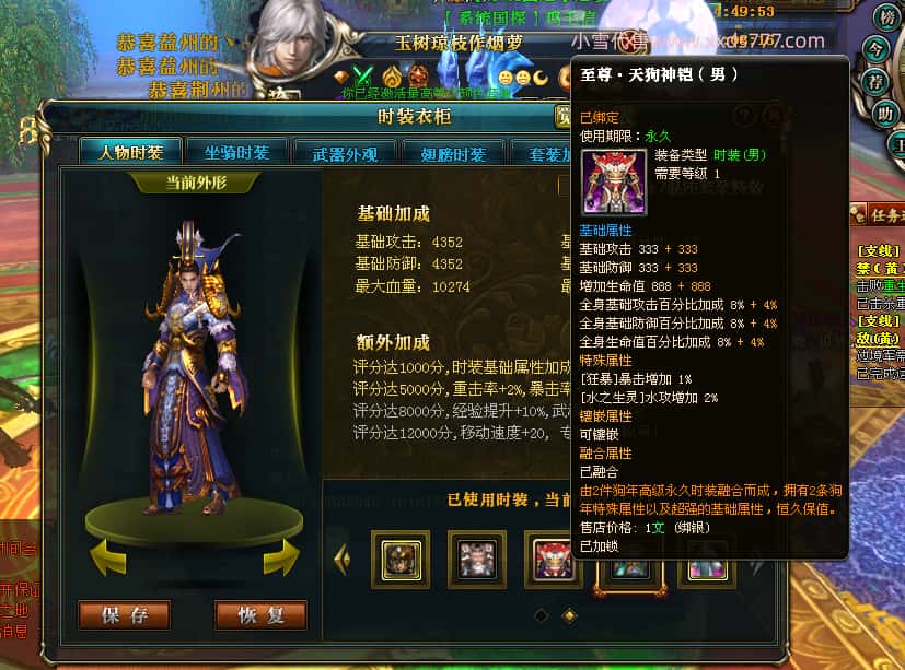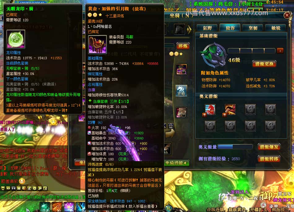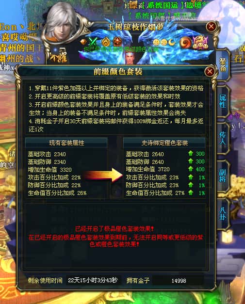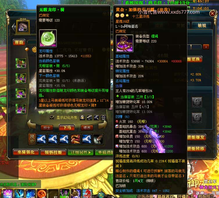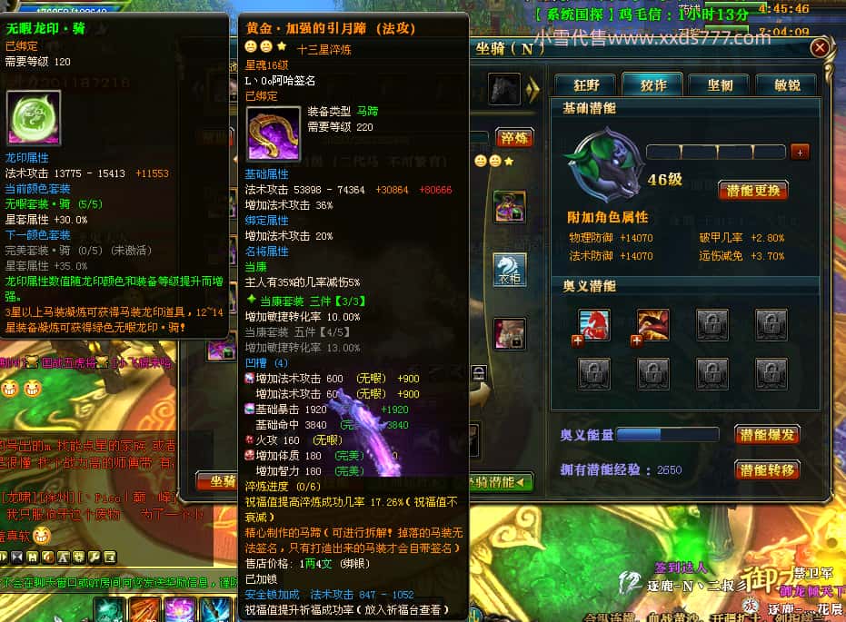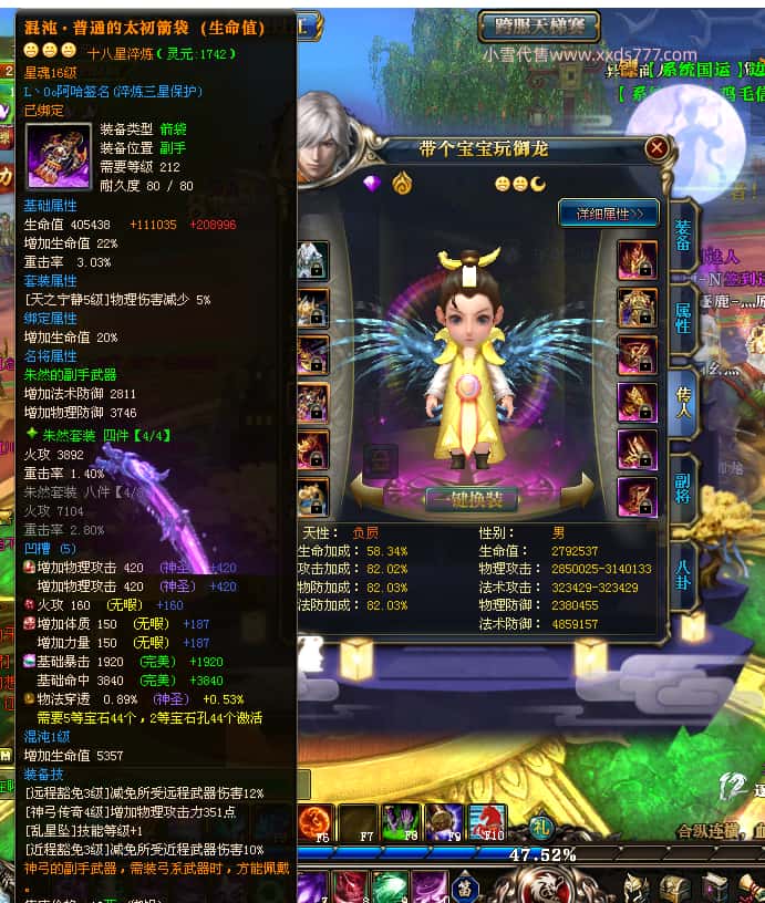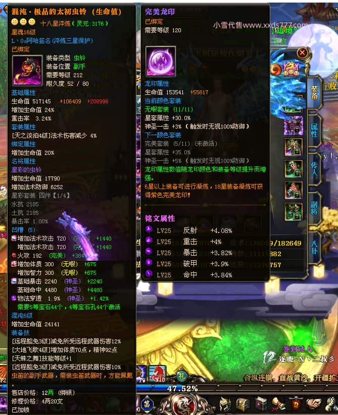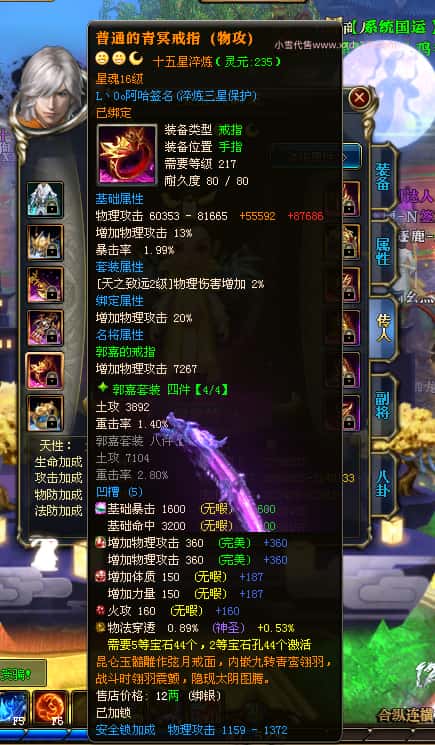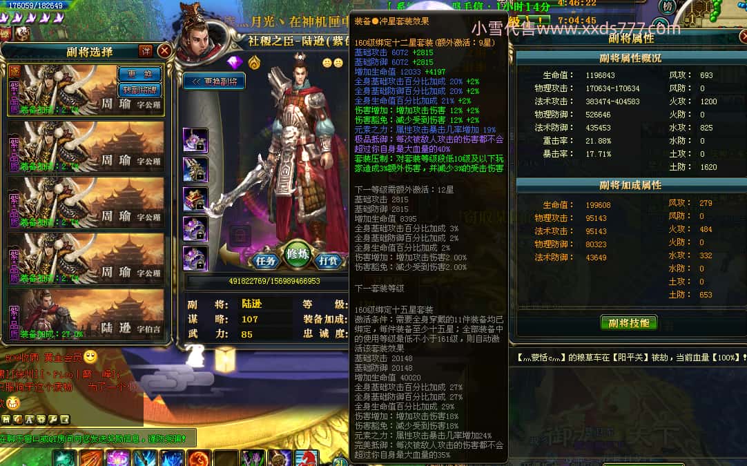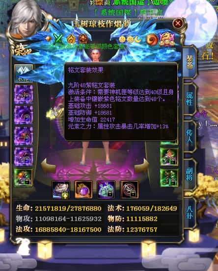 编号Z23398 玉树琼枝作烟萝 逐鹿天下 徐州 世界排名第23名 30118W战力 人物混沌极品橙15X(6件18X) 传人史诗紫15X 副将精良紫12X 马黄金加强橙13X 人物混沌6级 极品紫16披风 人物星魂16级 传人16级 副将12级 马星魂16级 人物铭刻(项链/主手/副手/戒指/盔甲18级,靴子16级,腰带/护腕15级) 点亮(项链/主手/副手/戒指/盔甲18星,剩下的4件16星) 马铭刻13级 点亮14星 人物5件紫+6件绿龙印 马绿龙印 五六等单双属性神圣完美无瑕石头 紫绿孔 已开完永久18星套 国婚时装