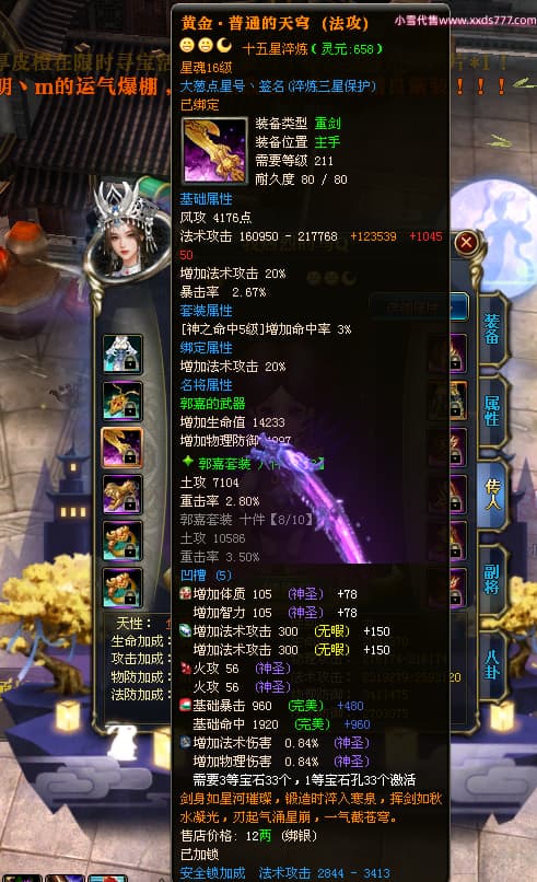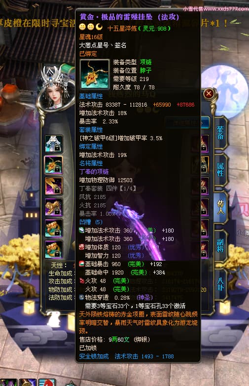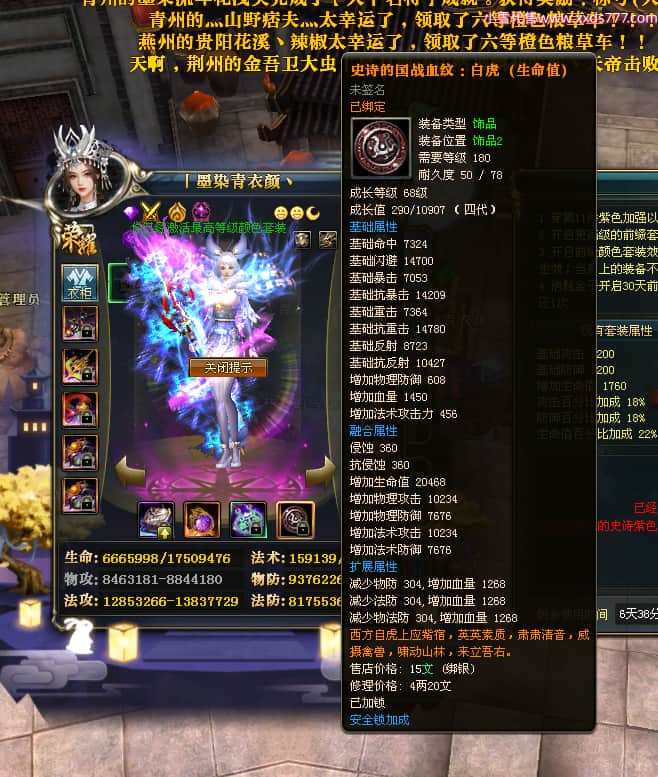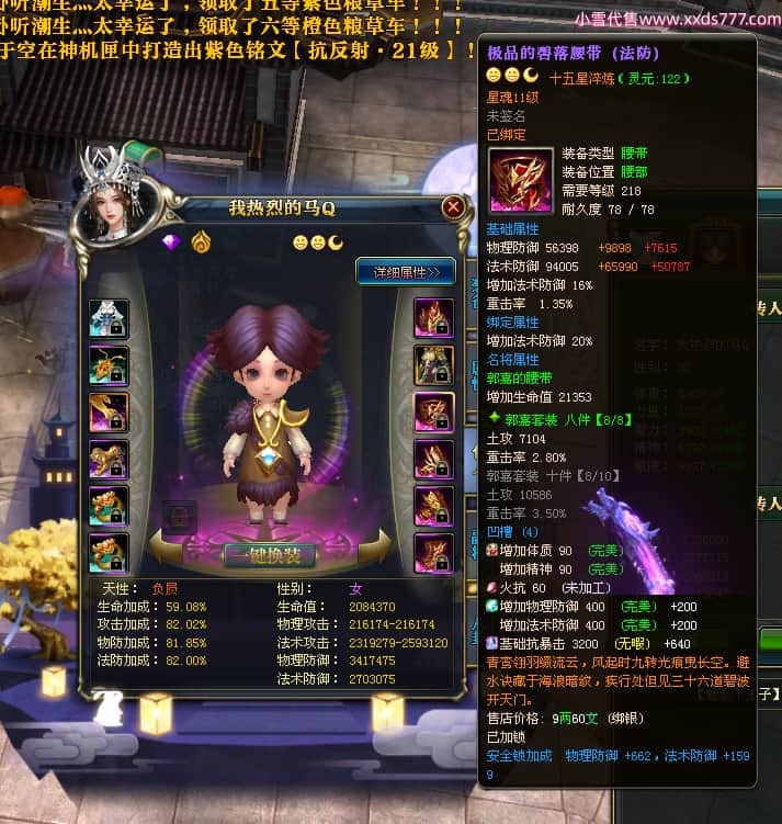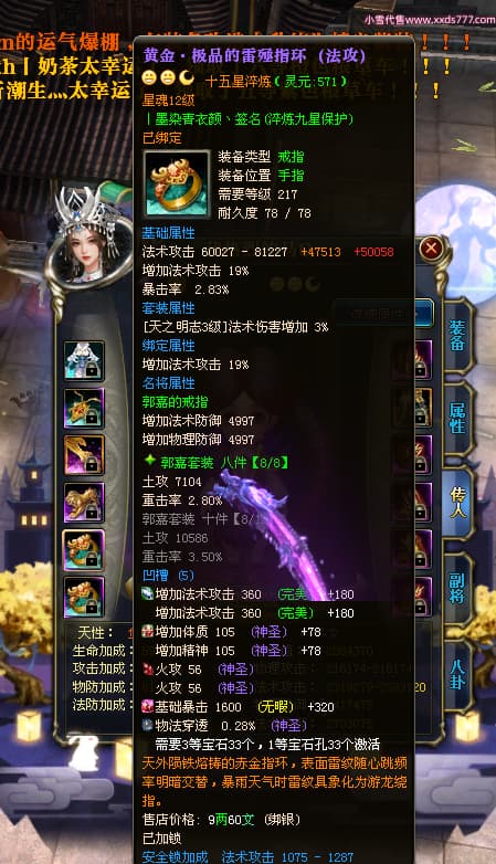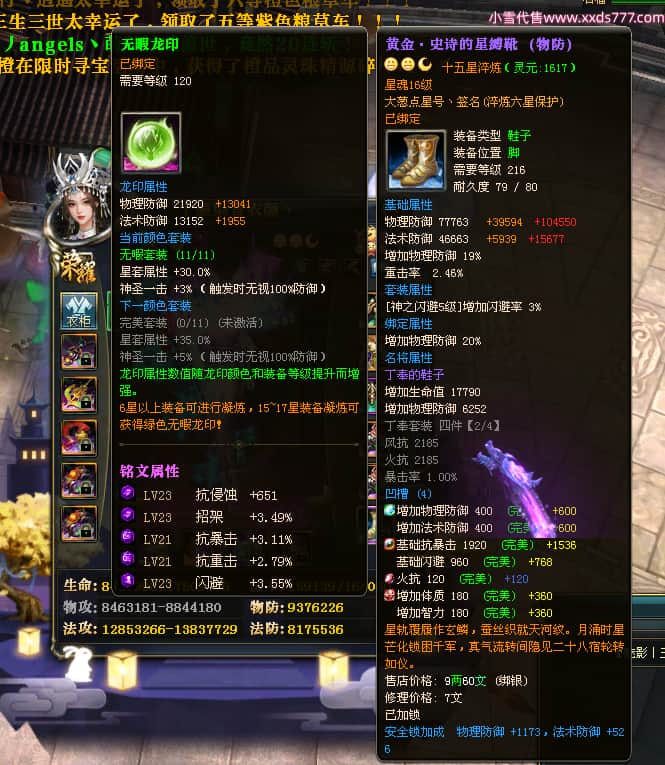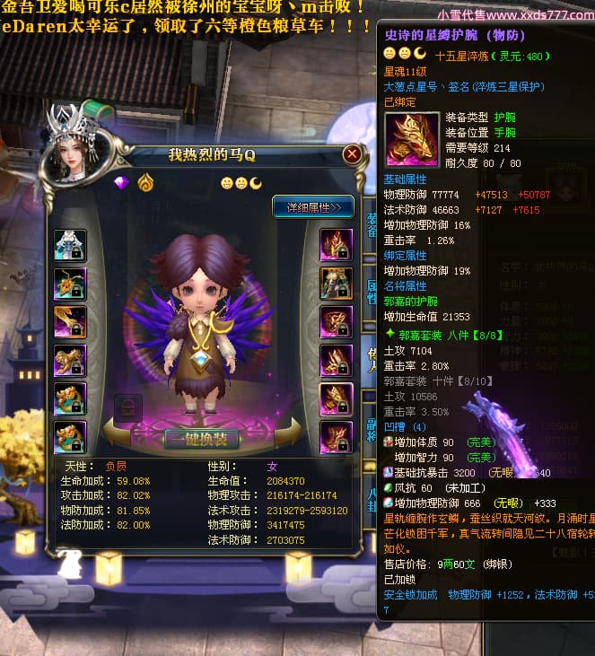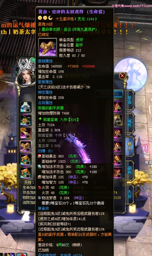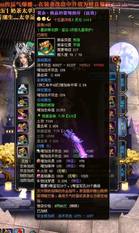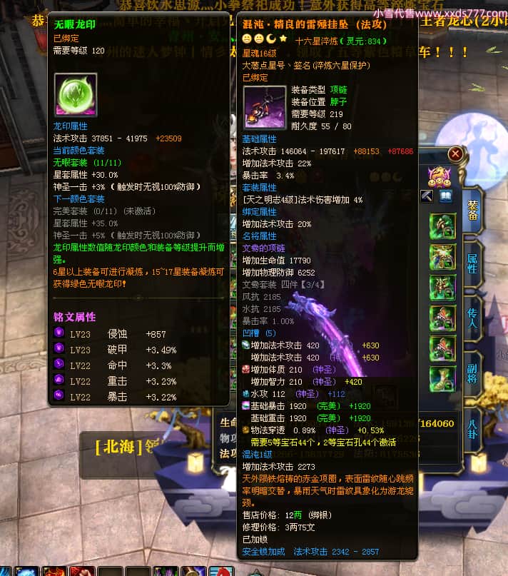 编号T23409 丨墨染青衣颜丶 龙腾问鼎 扬州 本国排名10名 19505W战力 人物黄金普通橙15X(7件混沌) 传人史诗紫15X 副将极品紫12X 马普通橙12X 极品紫15披风 人物星魂16级 传人星魂11级 副将星魂6级 马星魂14级 人物铭刻5件16级其余15级 人物点亮16星 马铭刻2件14级其余12级 点亮12星 人绿龙印 马黄龙印 六等单双属性神圣完美无瑕石头 黄绿孔 可以转移百分百安全