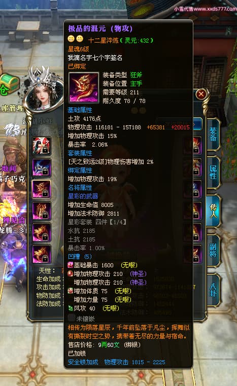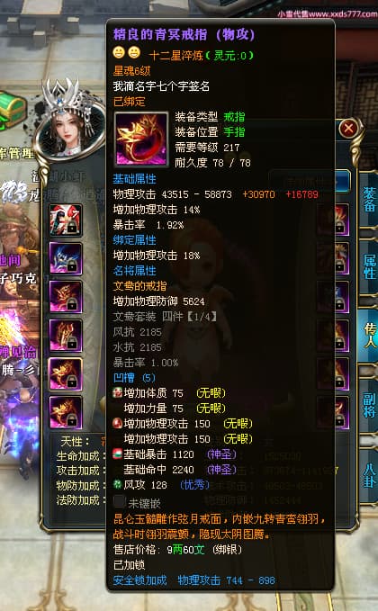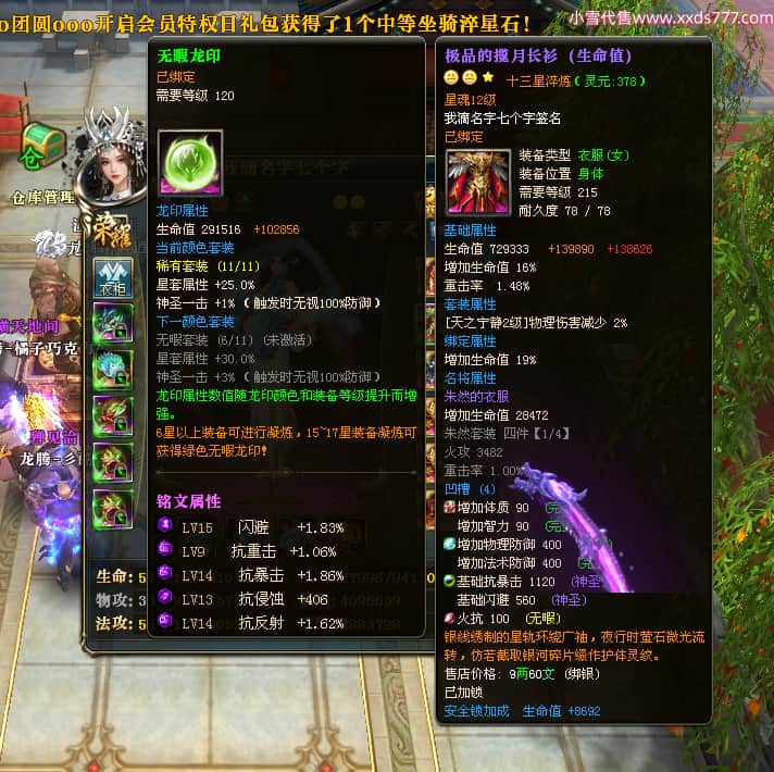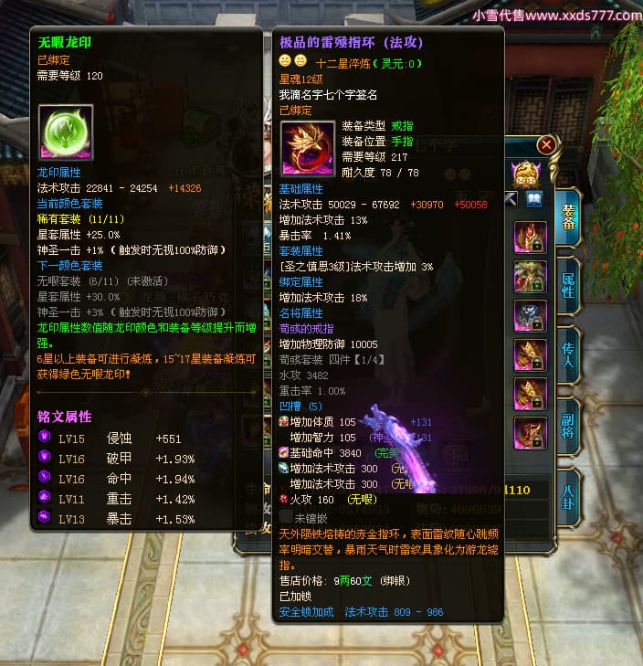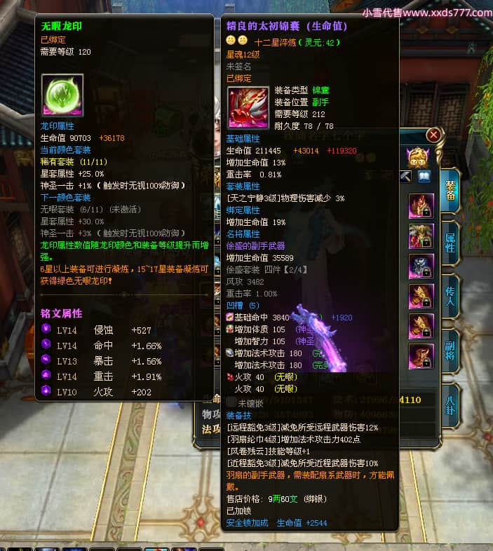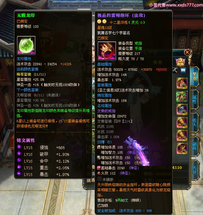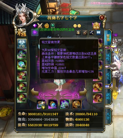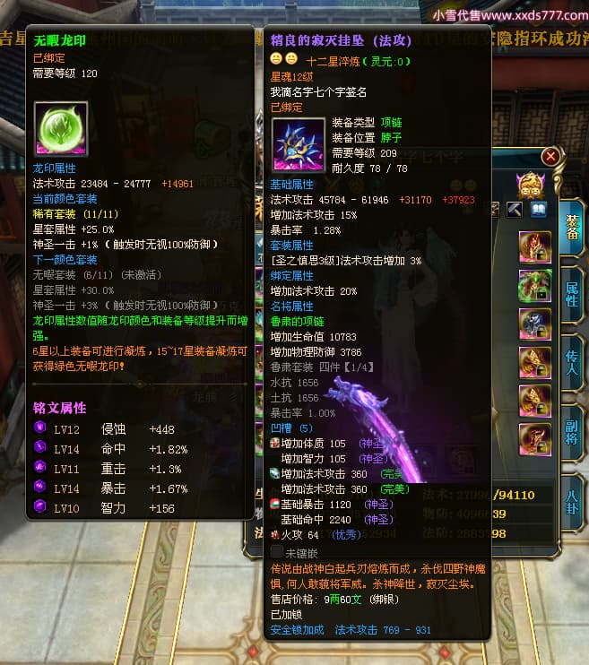 编号T23429 我滴名字七个字 龙腾问鼎 荆州 7085W战力 人物精良紫12X(1件15X) 传人精良紫12X 副将精良紫12X 马精良紫9X 加强紫13披风 人物星魂11级 传人星魂6级 马星魂5级 人物铭刻2件13级其余12级 点亮12星 马铭刻12级 点亮10星 人物黄龙印(6件绿龙印) 马蓝龙印 五等单双属性完美无暇神圣石头 可以转移百分百安全