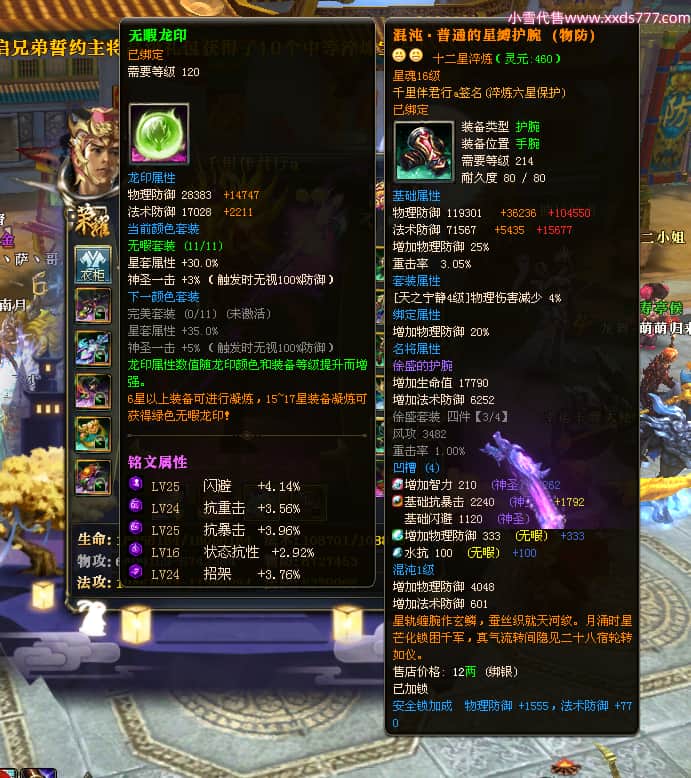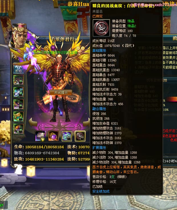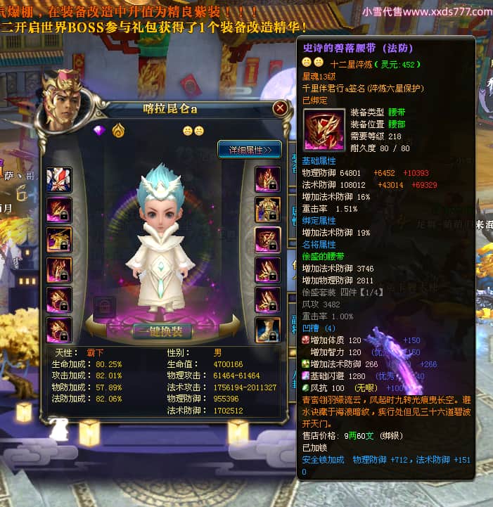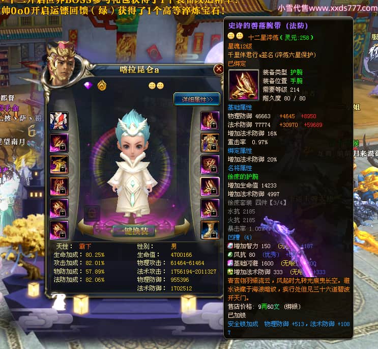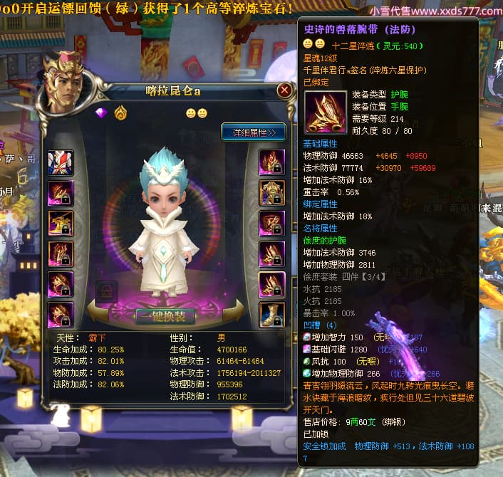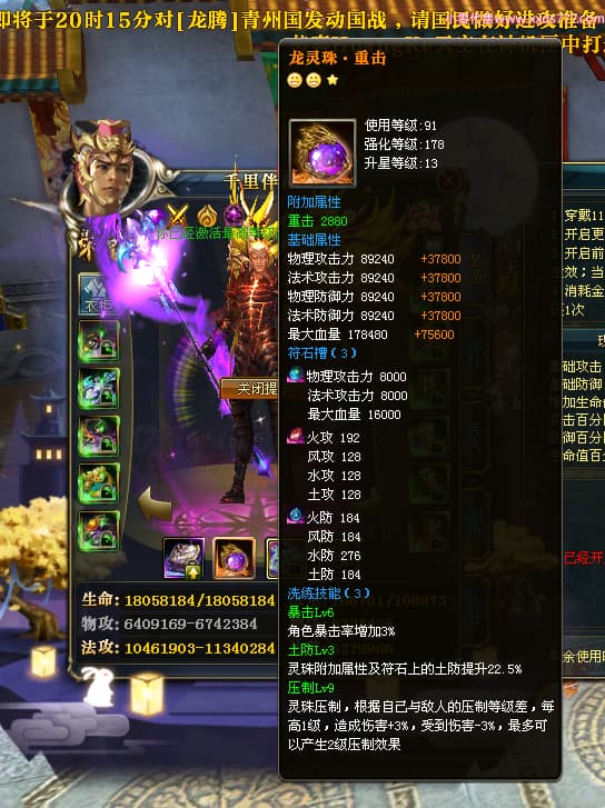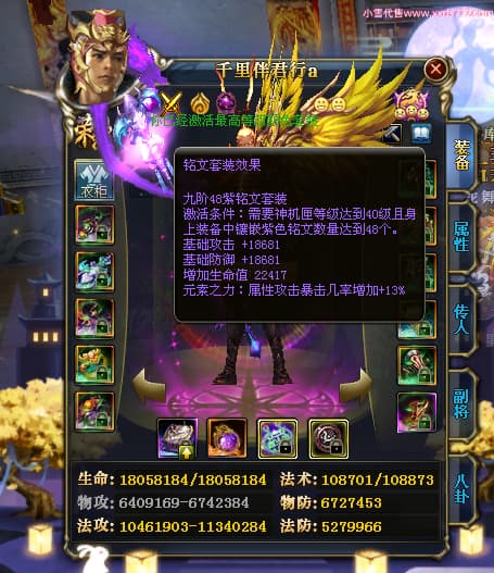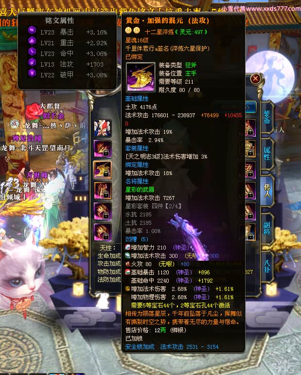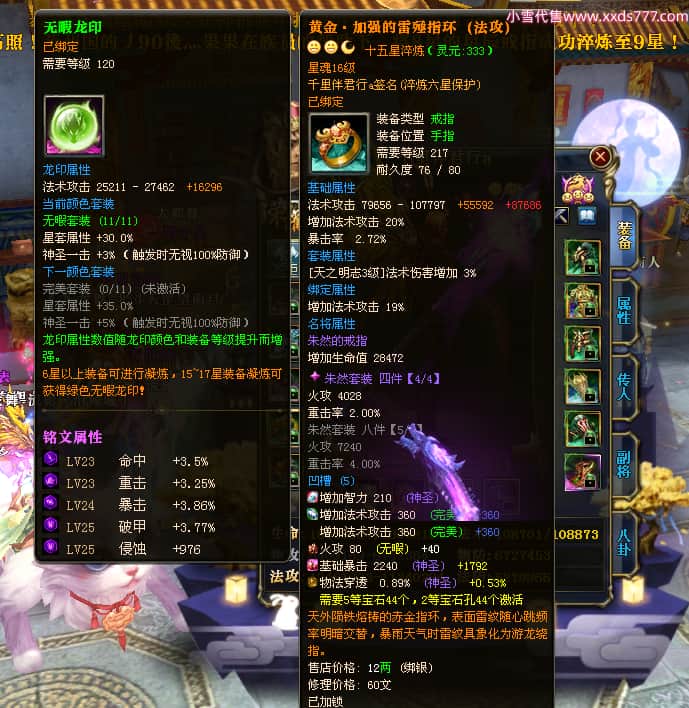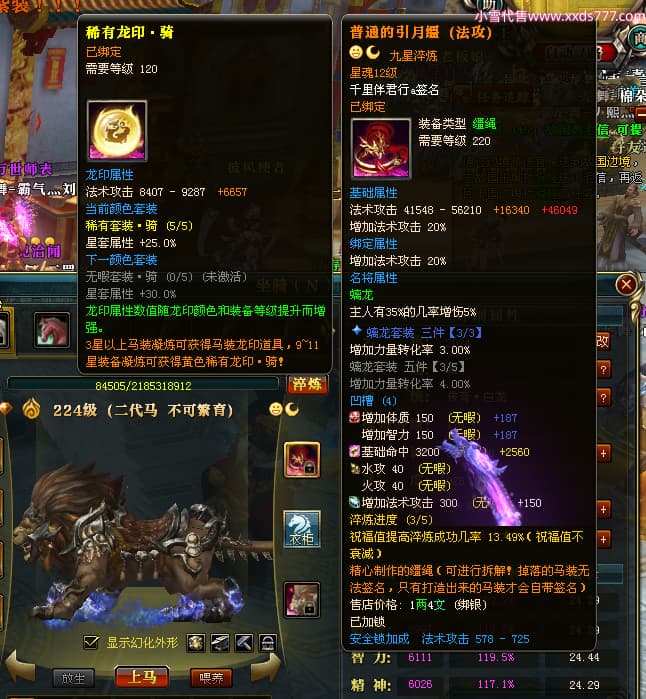 编号W23450 千里伴君行a 龙舞九州 幽州 本国排名40名 15612W战力 人物黄金普通橙12X(9件15X6件混沌) 传人史诗紫12X 副将精良紫12X 马普通橙9X 精良紫15披风 人物星魂15级 传人12级 副将6级 马星魂12级 人物铭刻15级 点亮14星 马铭刻13级 点亮10星 人物绿龙印 马黄龙印 六等单双属性神圣完美无瑕石头 蓝黄孔