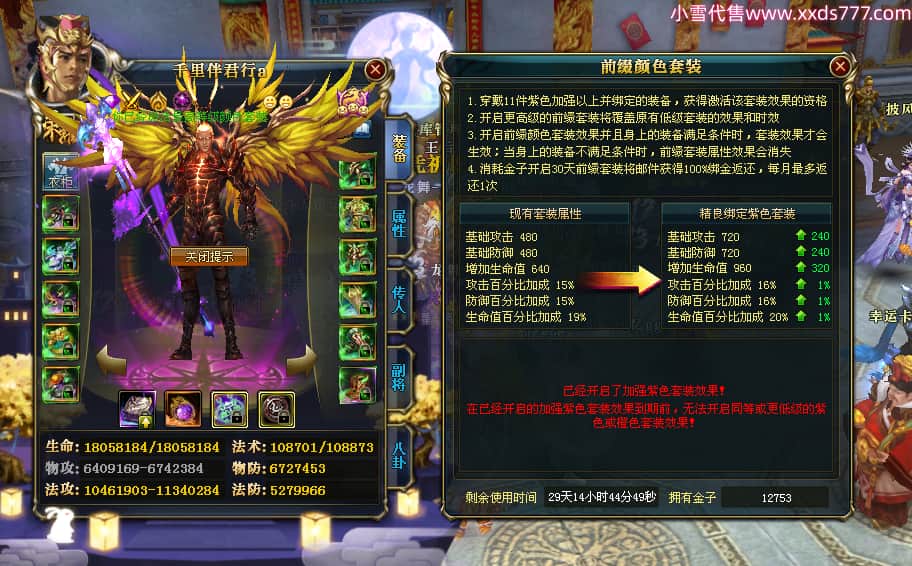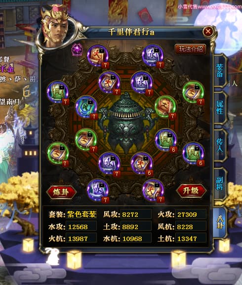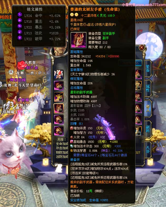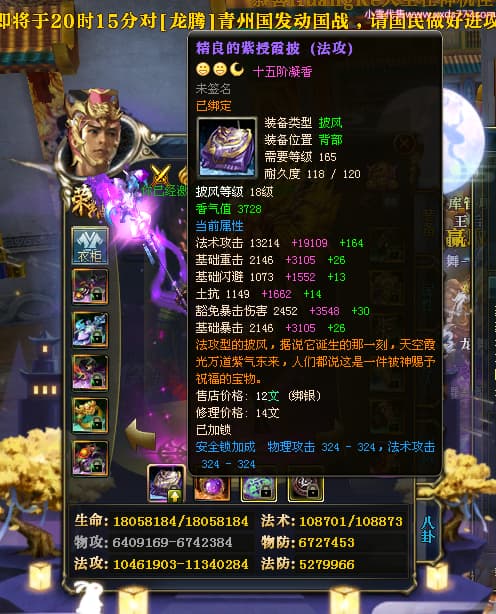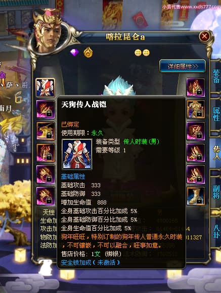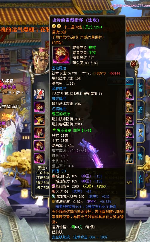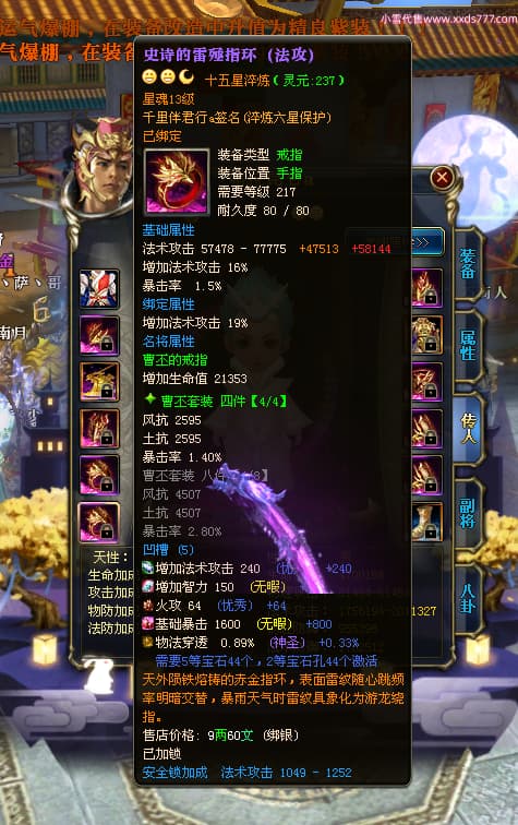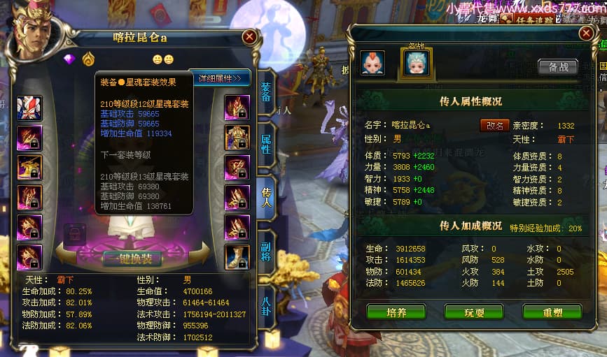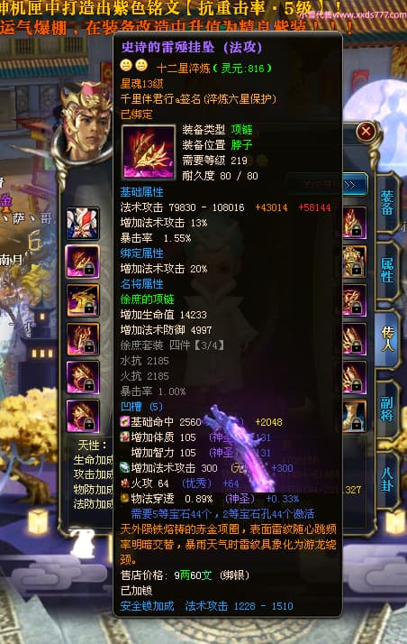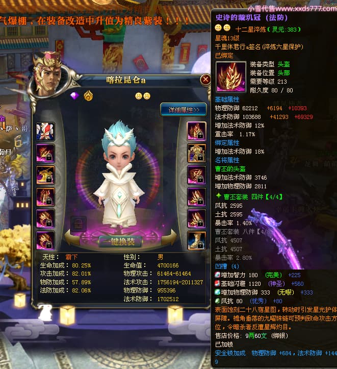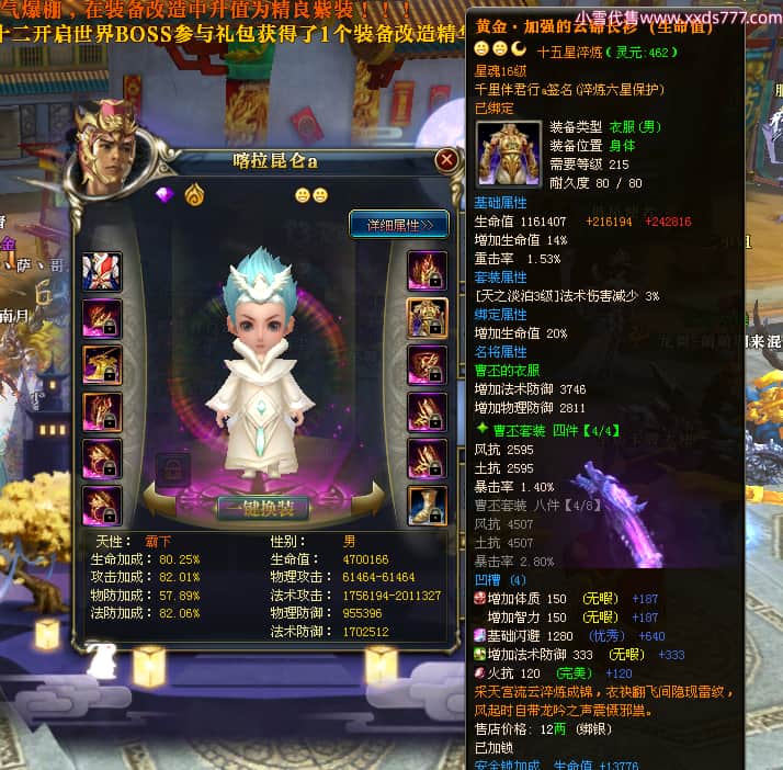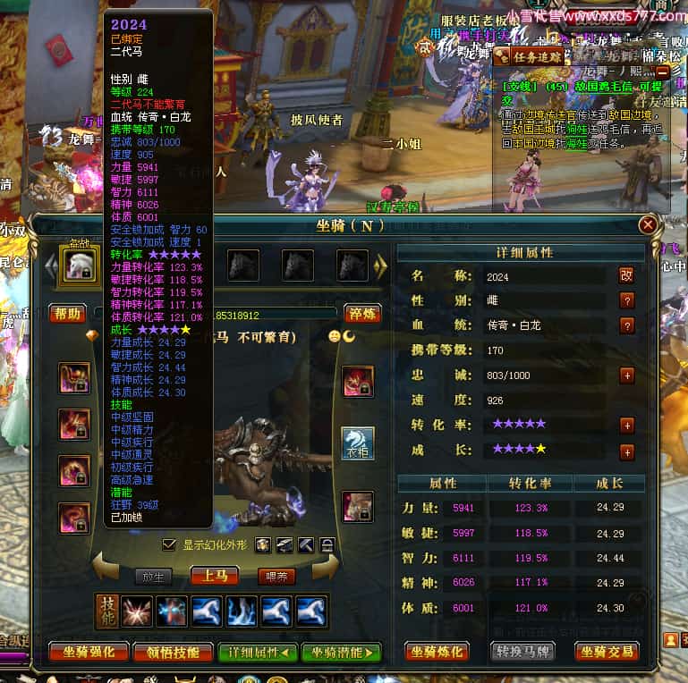 编号W23450 千里伴君行a 龙舞九州 幽州 本国排名40名 15612W战力 人物黄金普通橙12X(9件15X6件混沌) 传人史诗紫12X 副将精良紫12X 马普通橙9X 精良紫15披风 人物星魂15级 传人12级 副将6级 马星魂12级 人物铭刻15级 点亮14星 马铭刻13级 点亮10星 人物绿龙印 马黄龙印 六等单双属性神圣完美无瑕石头 蓝黄孔
