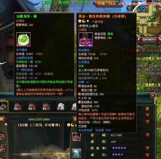 编号J23530 v积极向上v 九州龙虎 荆州 世界排名33名 4011W战力 人物黄金普通橙12X(6件15X7件混沌) 马黄金极品橙10X 人物绿龙印(7件紫龙印) 马绿龙印 六等单双属性石头 已开完永久15星套 可以转移百分百安全