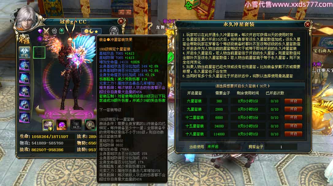 编号W23548 冠希g丶CC 龙舞九州 江州 200级 人物10X点星号(1件15X5件12X) 人物高淬183个 坐骑中淬18个