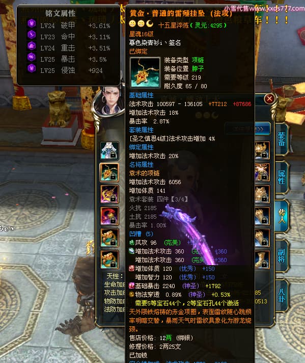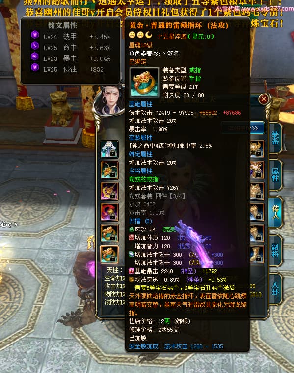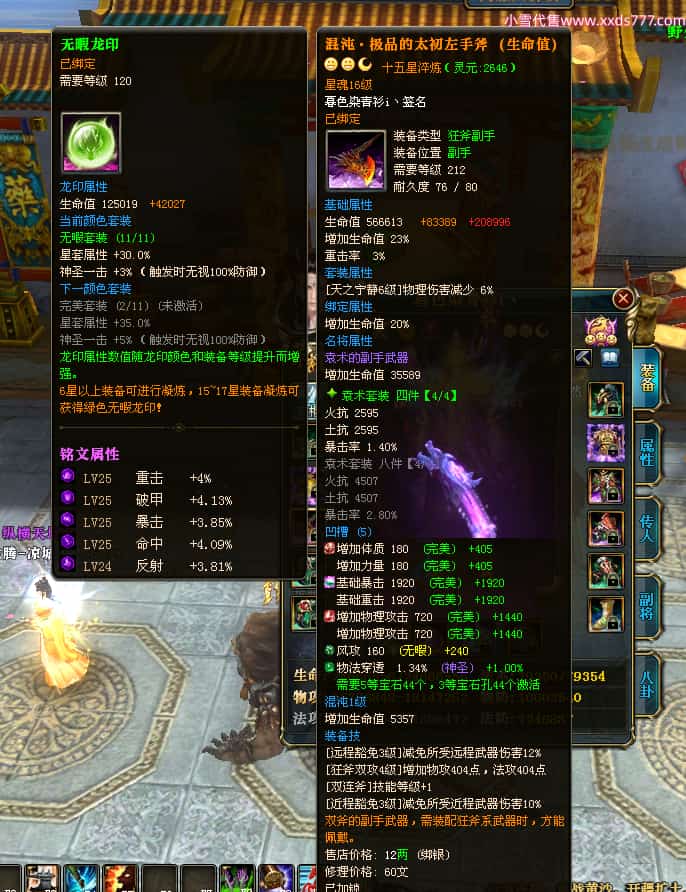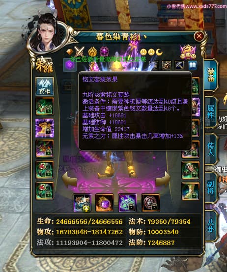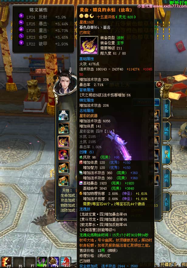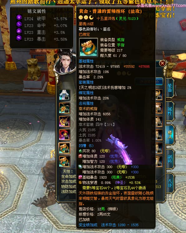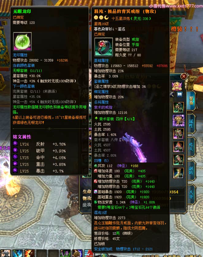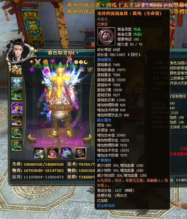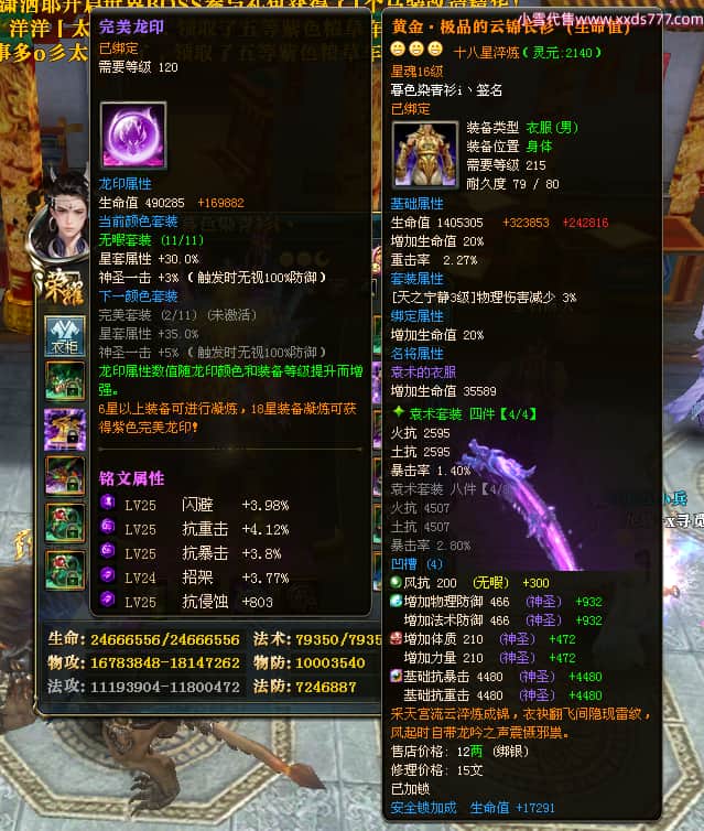 编号T23551 暮色染青衫i丶 龙腾问鼎 豫州 世界排名66名 26042W战力 人物黄金精良橙15X(2件18X8件混沌) 传人黄金普通橙15X 副将史诗紫12X 马加强橙13X 极品紫16披风 人物星魂16级 传人星魂16级 副将星魂8级 马星魂16级 人物铭刻1件18级1件17级1件16级其余15级 人物衣服点亮18其他16星 马铭刻15级 点亮14星 人绿龙印(2件紫龙印) 马绿龙印 六等单双属性神圣完美无暇石头 绿孔