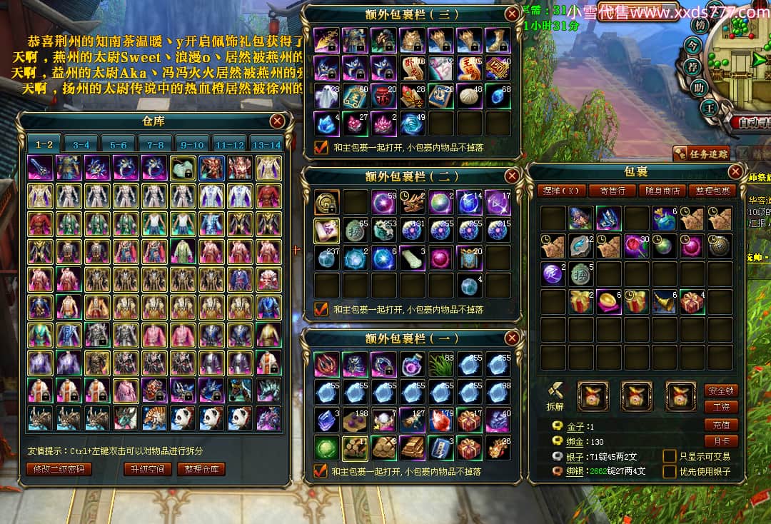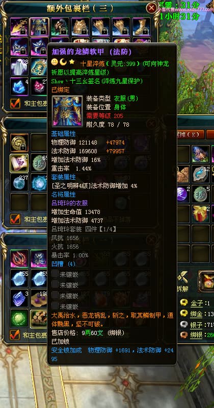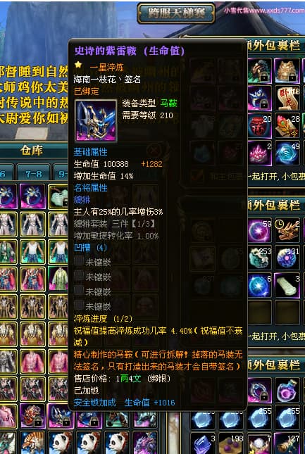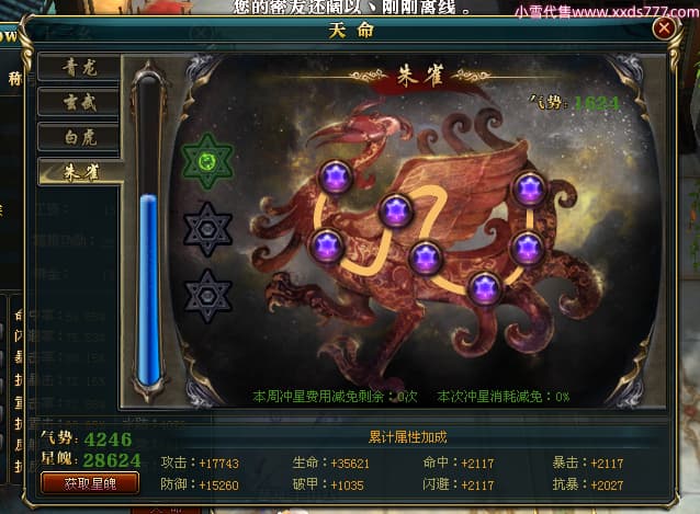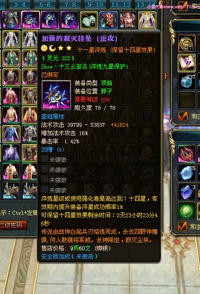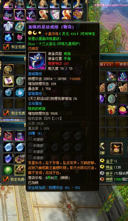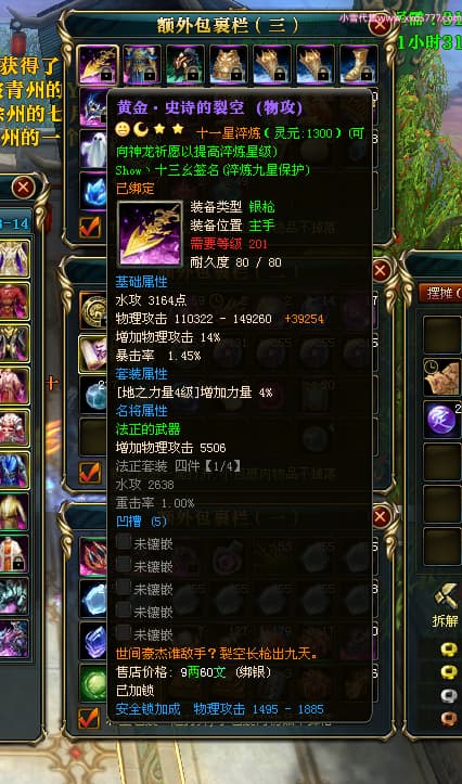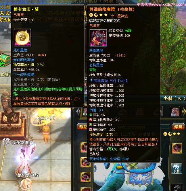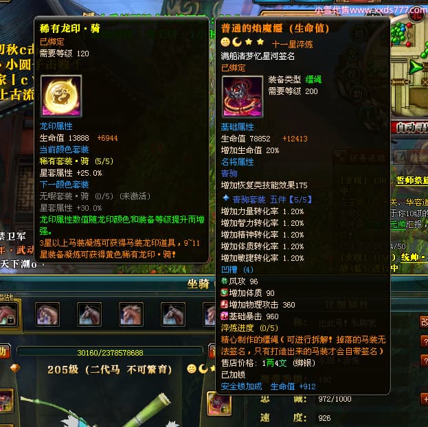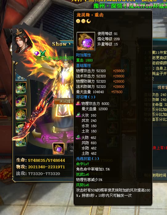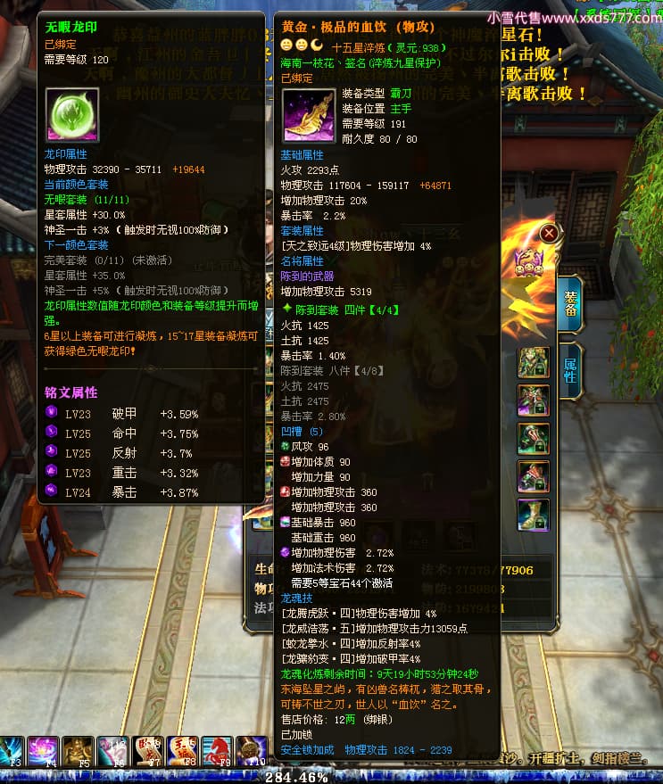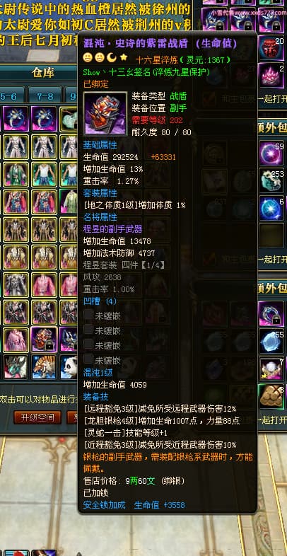 编号L23579 Show丶十三幺 龙战王者 徐州 本国排名14名 4542W战力 人物黄金精良橙15X(4件混沌) 马普通橙11X 人物绿龙印 马黄龙印 六等单双属性石头 已开完永久15星套