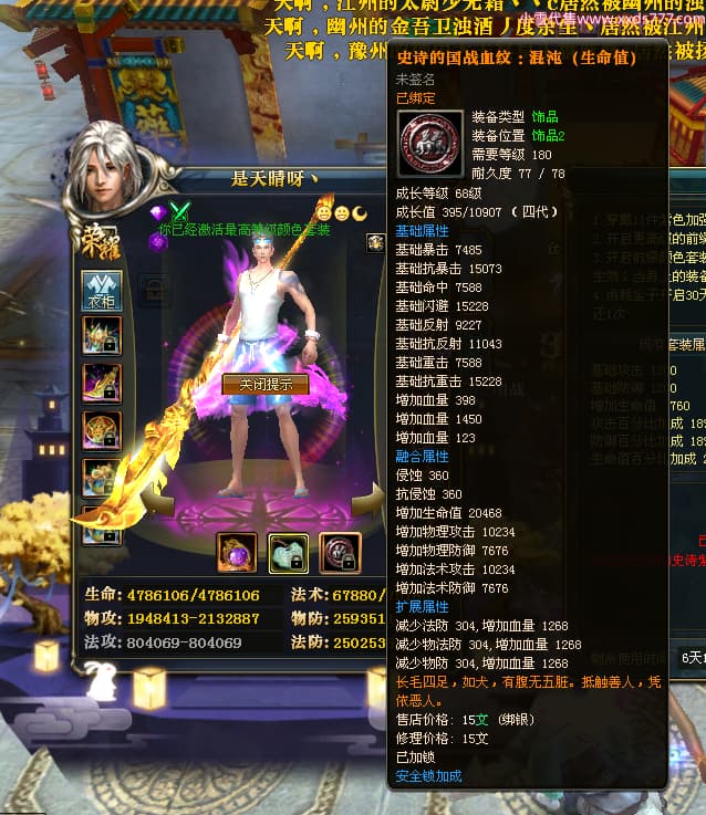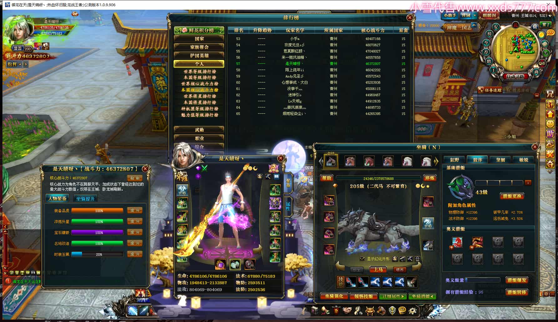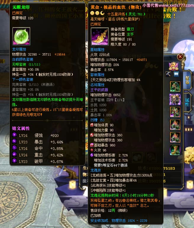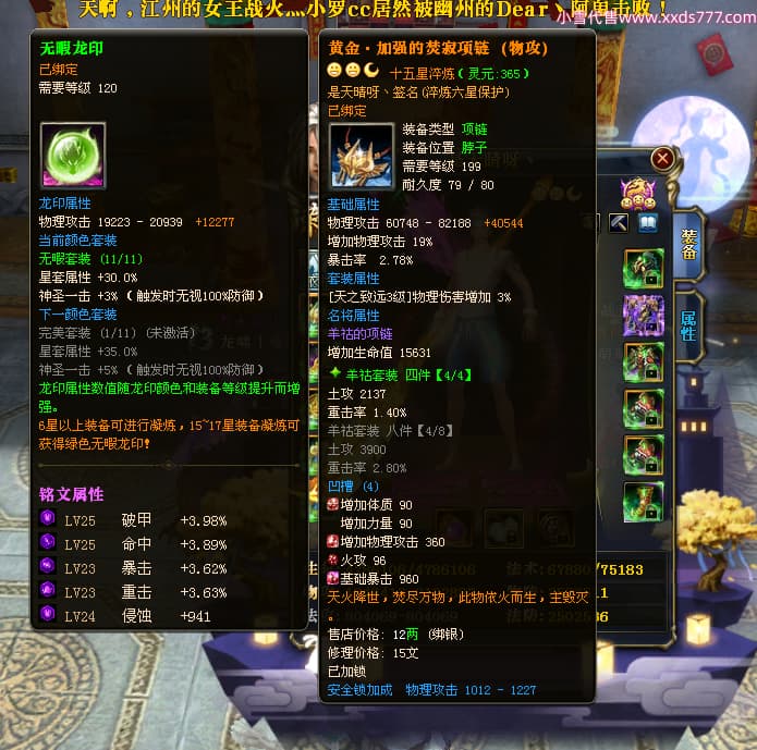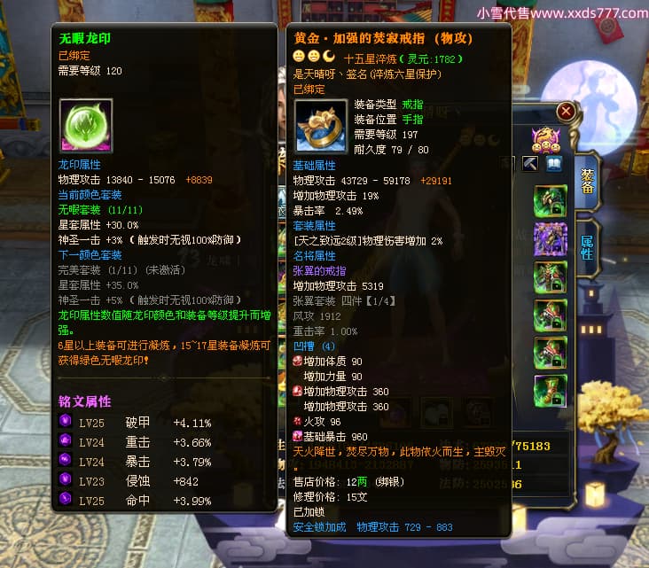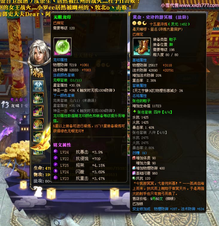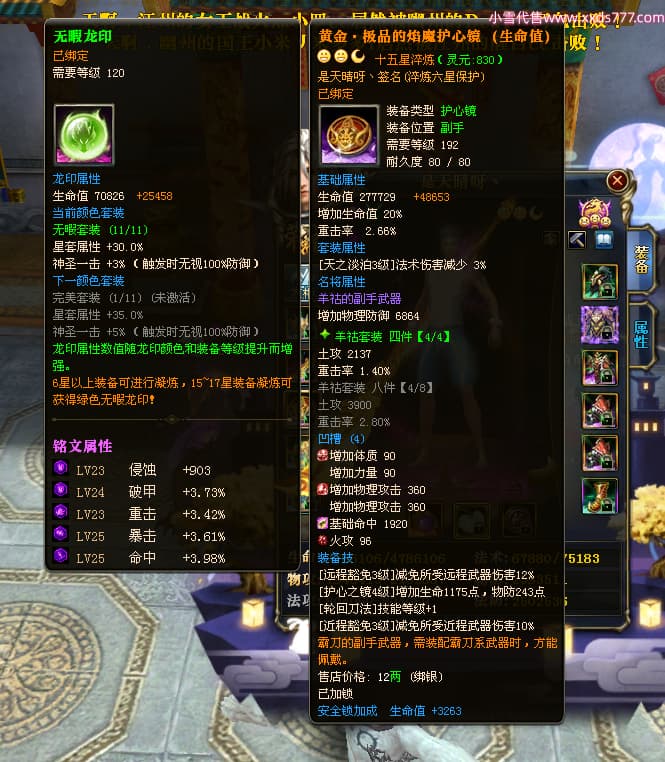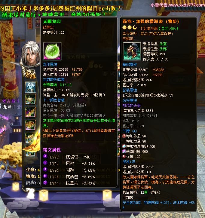 编号L23603 是天晴呀丶 龙战王者 青州 本国排名57名 4637W战力 人物黄金加强橙15X(4件混沌) 马普通橙10X 人物绿龙印(1件紫龙印) 马黄龙印 六等单双属性石头 可以转移百分百安全