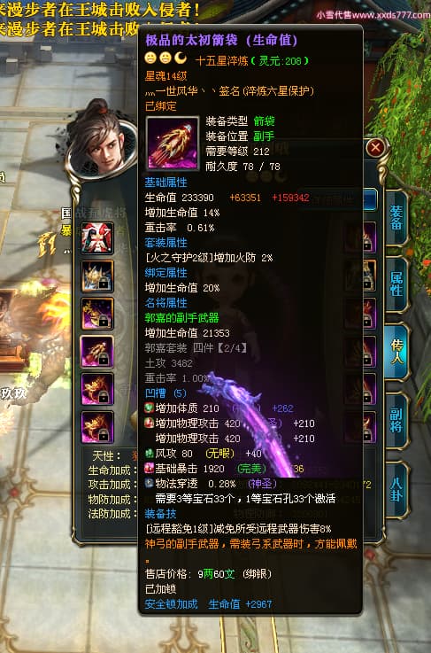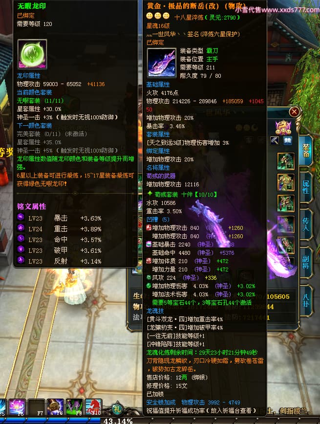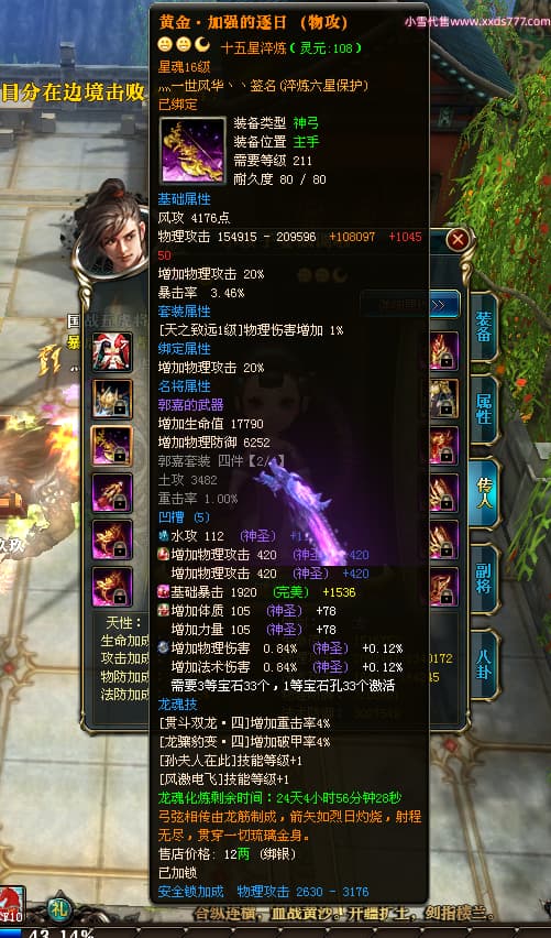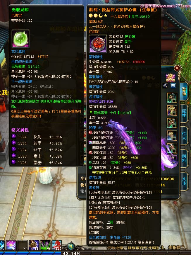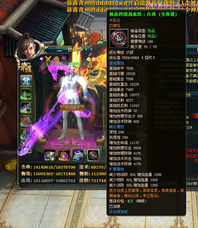 编号T23604 灬一世风华丶丶 龙腾问鼎 燕州 世界排名105名 22931W战力 人物黄金普通橙15X(2件18X6件混沌) 传人极品紫15X 副将精良紫12X 马黄金普通橙13X(双潜能50级47级) 极品紫16披风 人物星魂16级 传人星魂14级 副将星魂6级 马星魂16级 人物铭刻6件16级其余15级 人物点亮16星 马铭刻13级 点亮14星 人绿龙印 马黄龙印 六等单双属性神圣完美无暇石头 黄绿孔 已开1次永久15星套 可以转移百分百安全