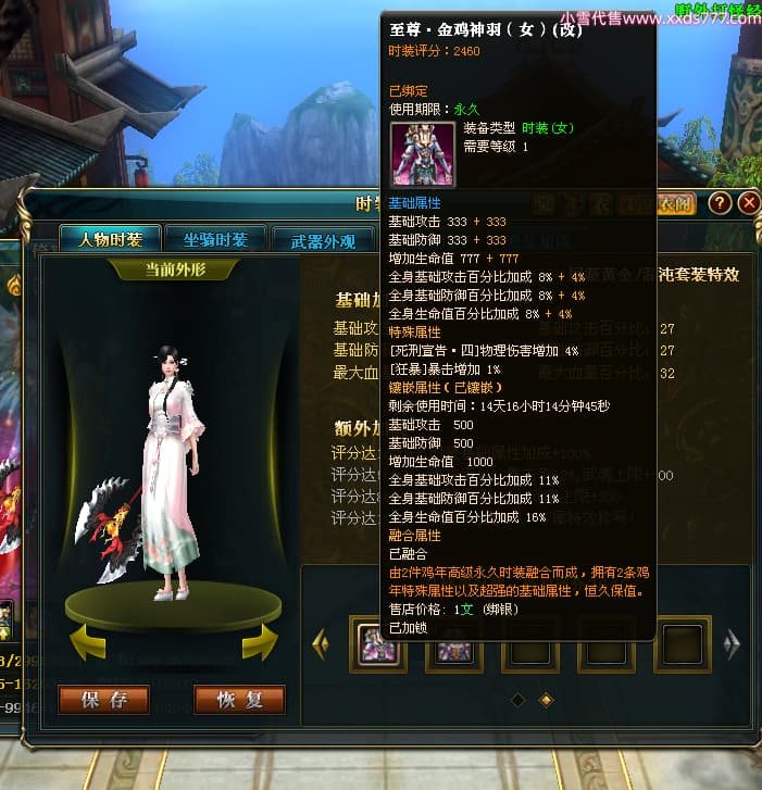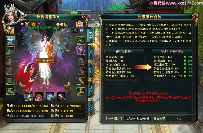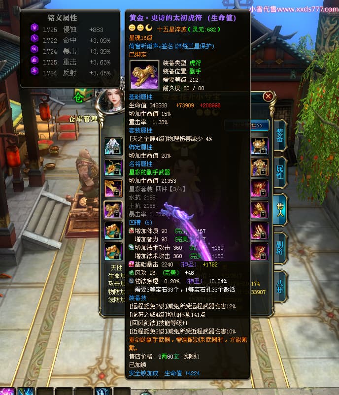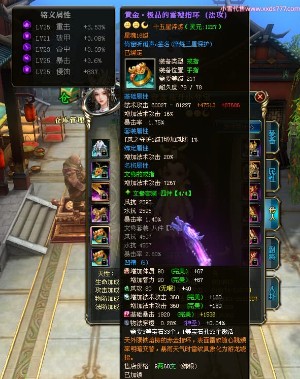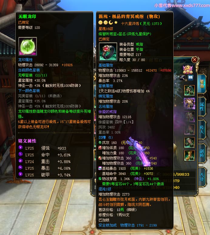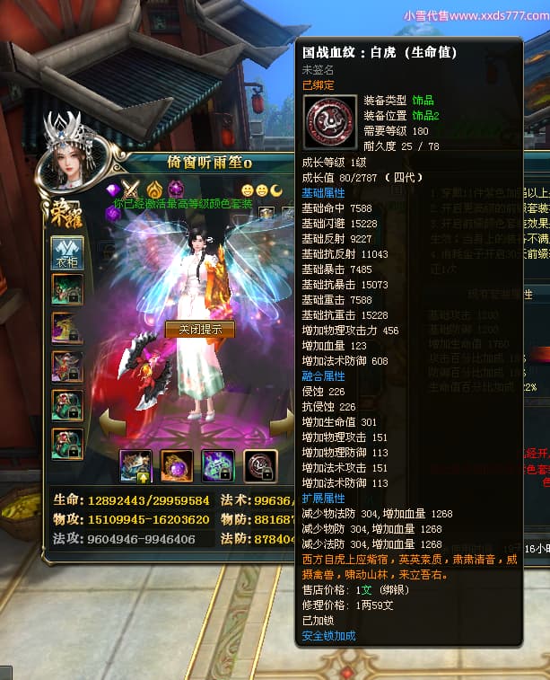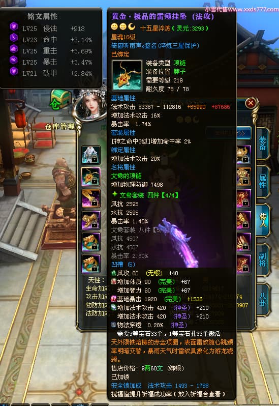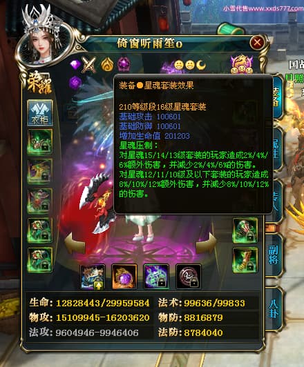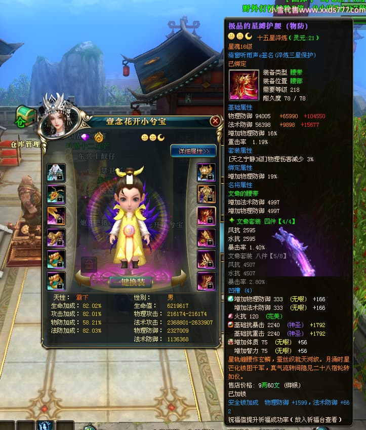 编号Z23631 倚窗听雨笙o 逐鹿天下 江州 世界排名45名 26019W战力 人物黄金极品橙15X(1件18X1件17X8件混沌) 传人极品紫15X 副将精良紫15X 马普通橙13X 极品紫15披风 人物星魂16级 传人星魂15级 副将星魂6级 马星魂16级 人物铭刻1件18级3件16级其余15级 人物点亮16星 马铭刻13级 点亮14星 人物绿龙印(1件紫龙印) 马黄龙印(4件绿龙印) 六等单双属性神圣完美无暇石头 黄绿孔 已开启永久18星套