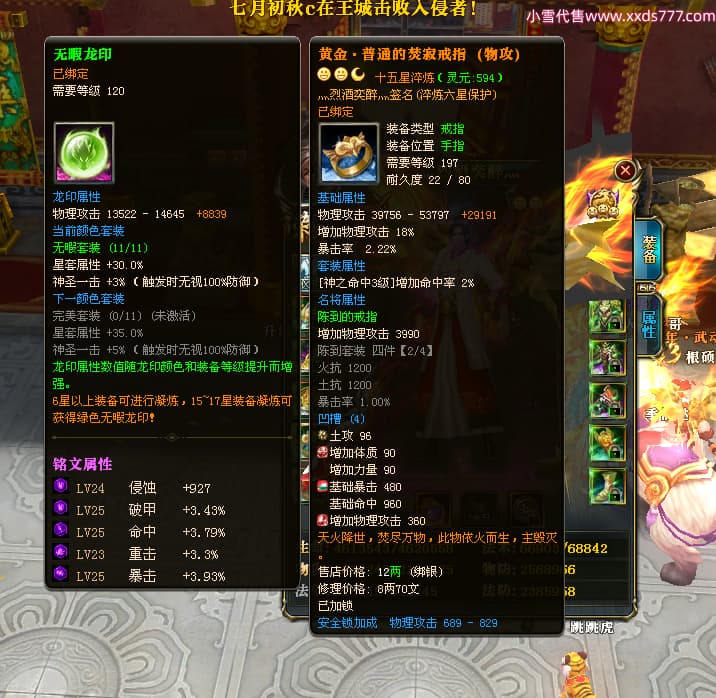 编号Q23654 灬烈酒奕醉灬 群龙纵横 徐州 本国排名67名 4530W战力 人物黄金普通橙12X(5件15X3件混沌) 马史诗紫9X 人物绿龙印 马黄龙印 六等单双属性石头 已开7次永久15星套