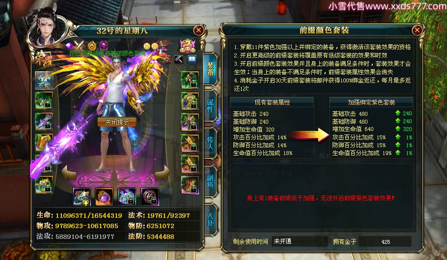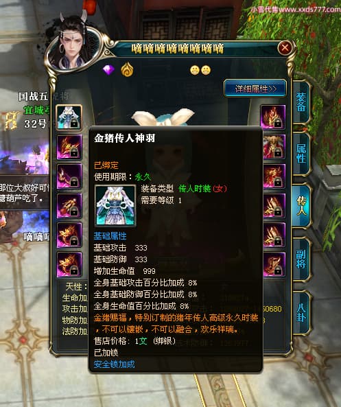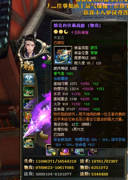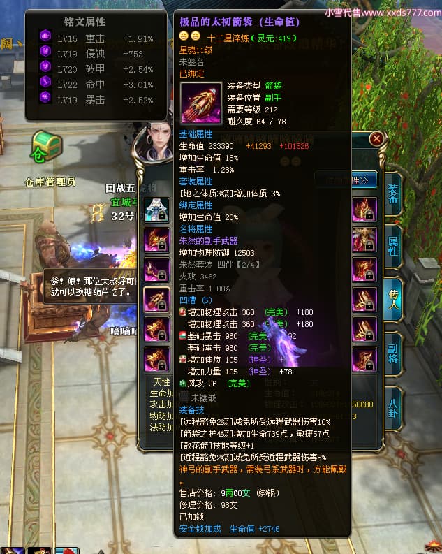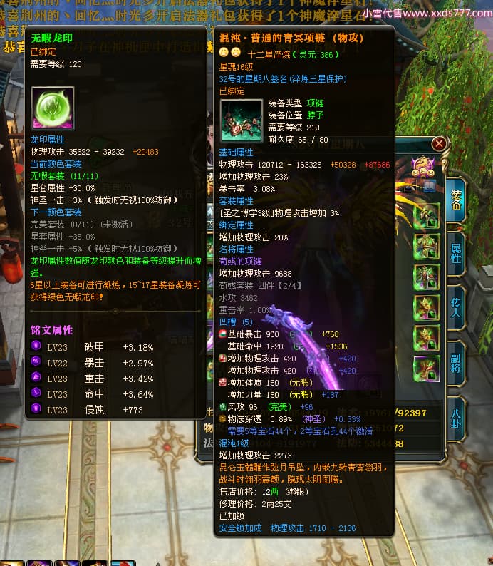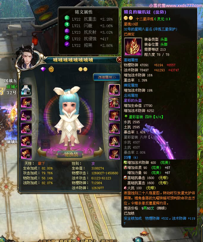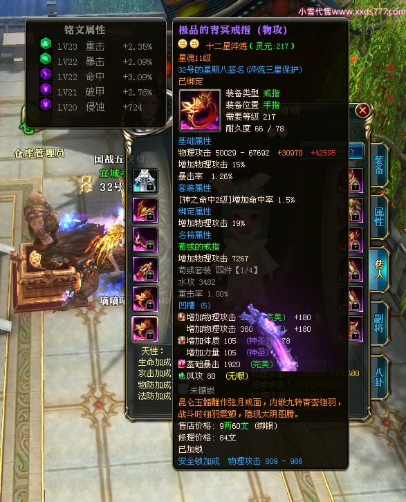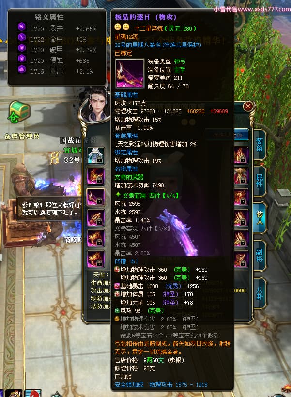 编号W23655 32号的星期八 龙舞九州 燕州 本国排名20名 14123W战力 人物普通橙12X(3件混沌) 传人精良紫12X 副将精良紫12X 马史诗紫12X 精良紫15披风 人物星魂16级 传人星魂10级 副将星魂6级 马星魂10级 人物铭刻4件15级2件14级其余12级 点亮1件16星2件14星其余12星 马铭刻12级 点亮12星 人物绿龙印 马黄龙印 五六等单双属性神圣完美无暇石头 蓝孔 已开启永久15星套