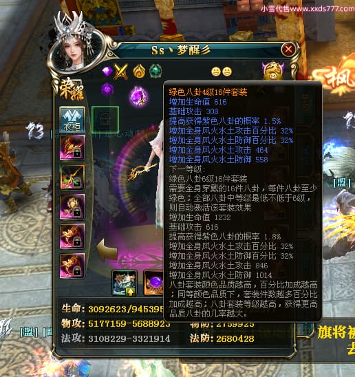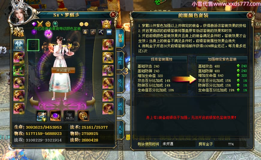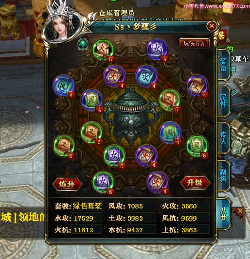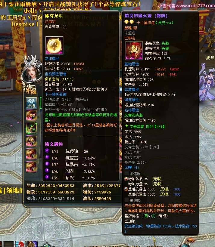 编号Z23667 Ss丶梦醒彡 逐鹿天下 燕州 本国排名77名 6250W战力 人物精良紫12X(1件15X1件混沌) 传人精良紫12X 马精良紫12X 人物铭刻1件15级1件14级其余12级 点亮8件12星其余10星 马铭刻12级 点亮12星 人物黄龙印(1件绿龙印) 马蓝龙印(2件黄龙印0) 五六等单双属性神圣完美无暇石头