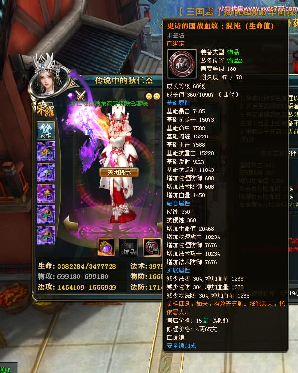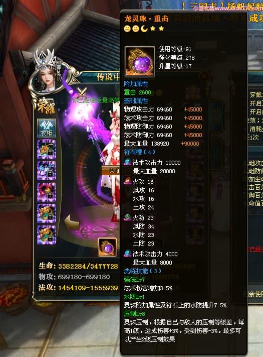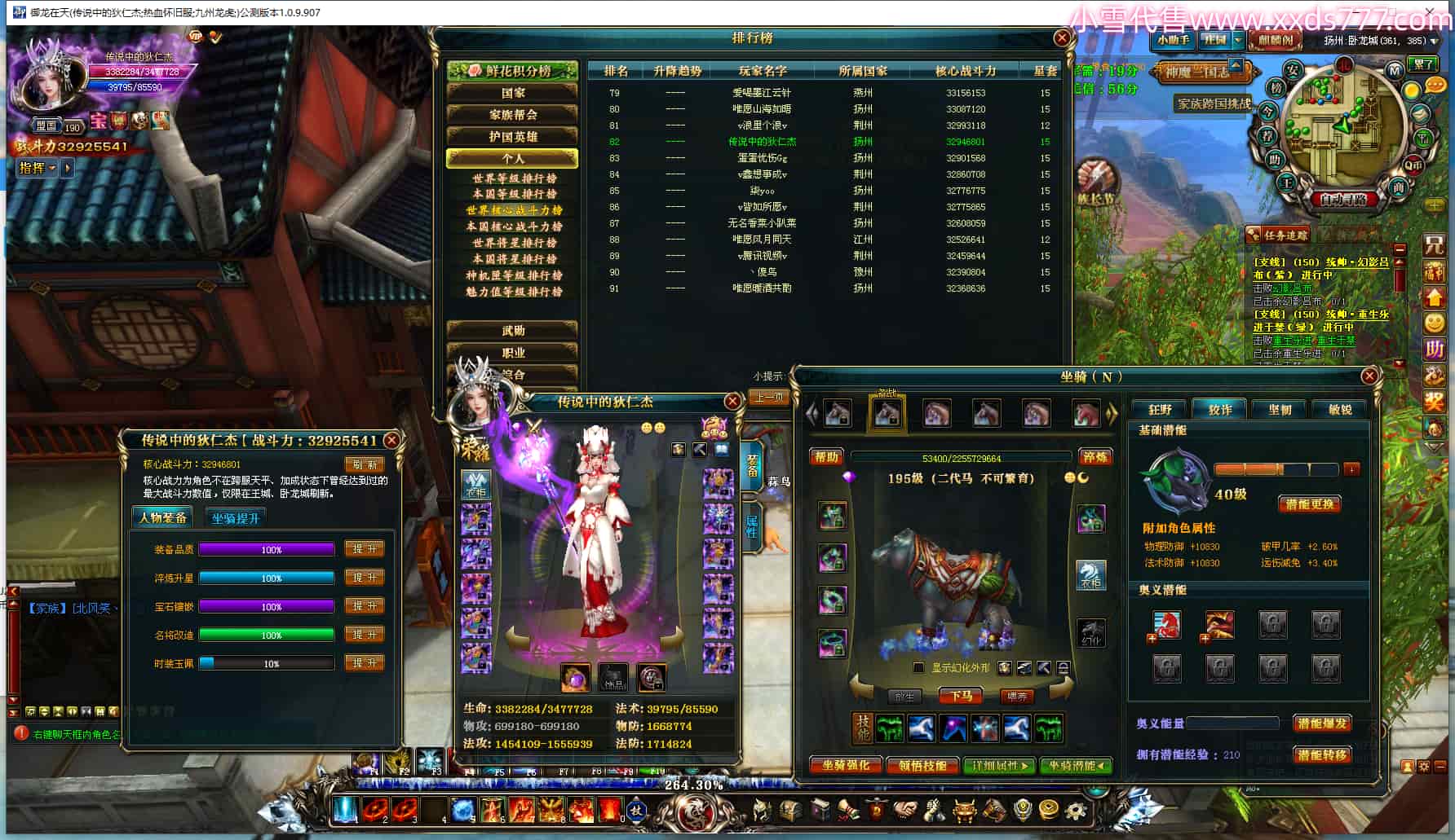 编号J23686 传说中的狄仁杰 九州龙虎 扬州 世界排名82名 3292W战力 人物黄金史诗紫12X 马史诗紫9X 人物紫龙印 马绿龙印 六等单双属性石头 已开完永久15星套 送俩300+高翠点星号 可以转移百分百安全