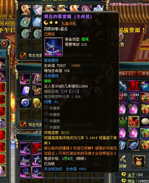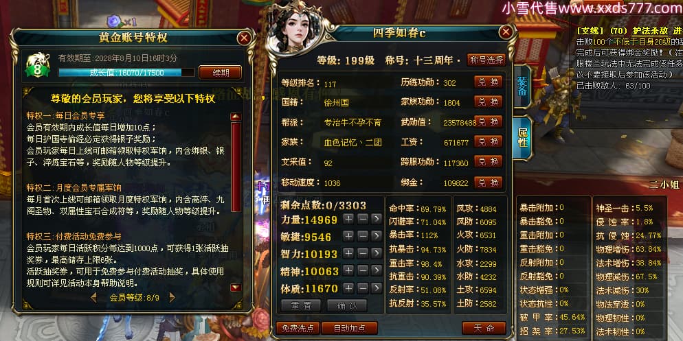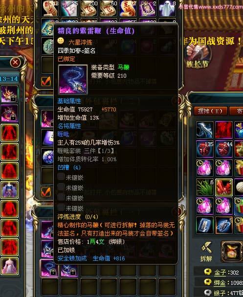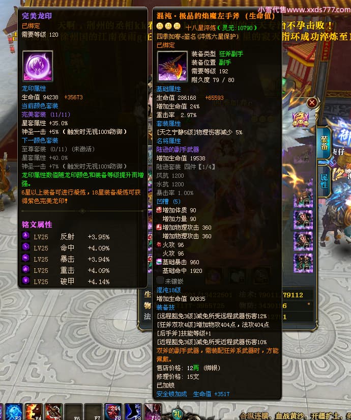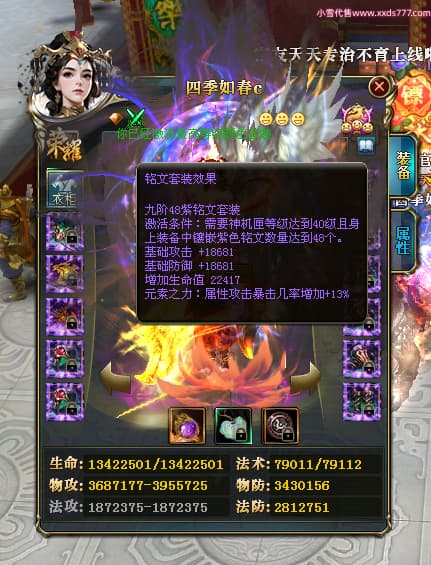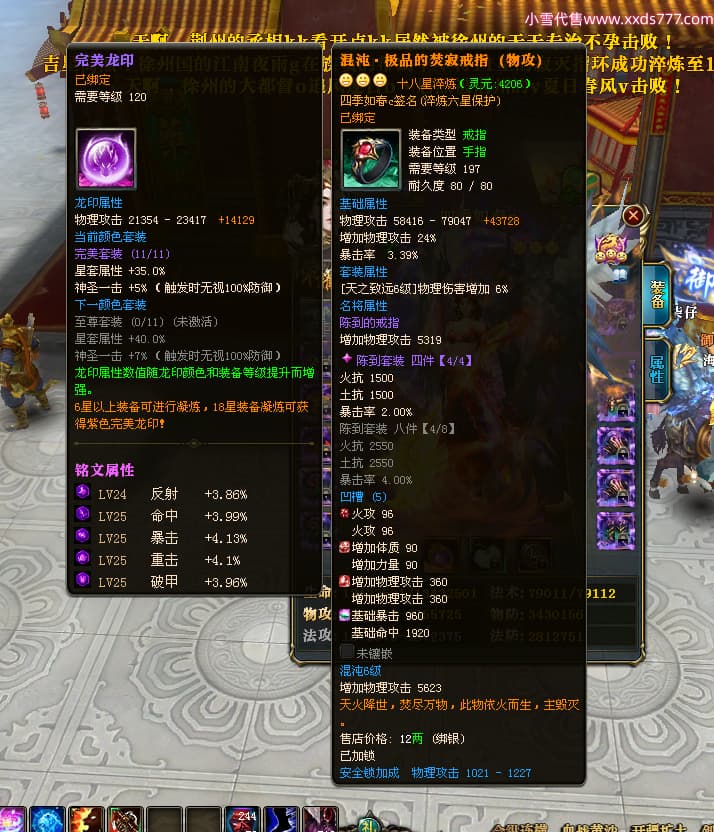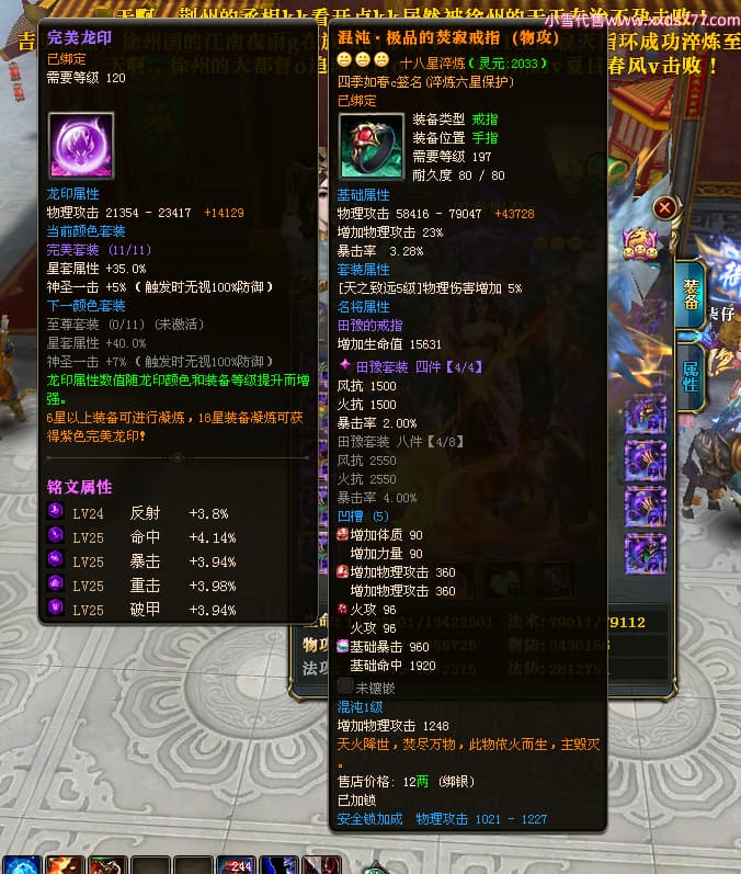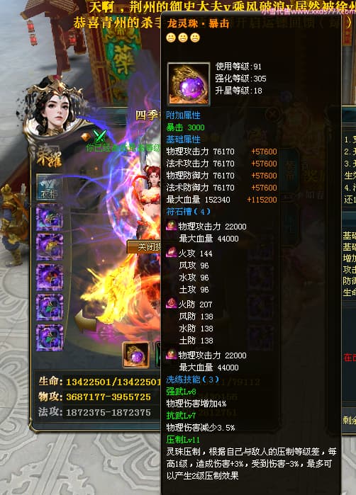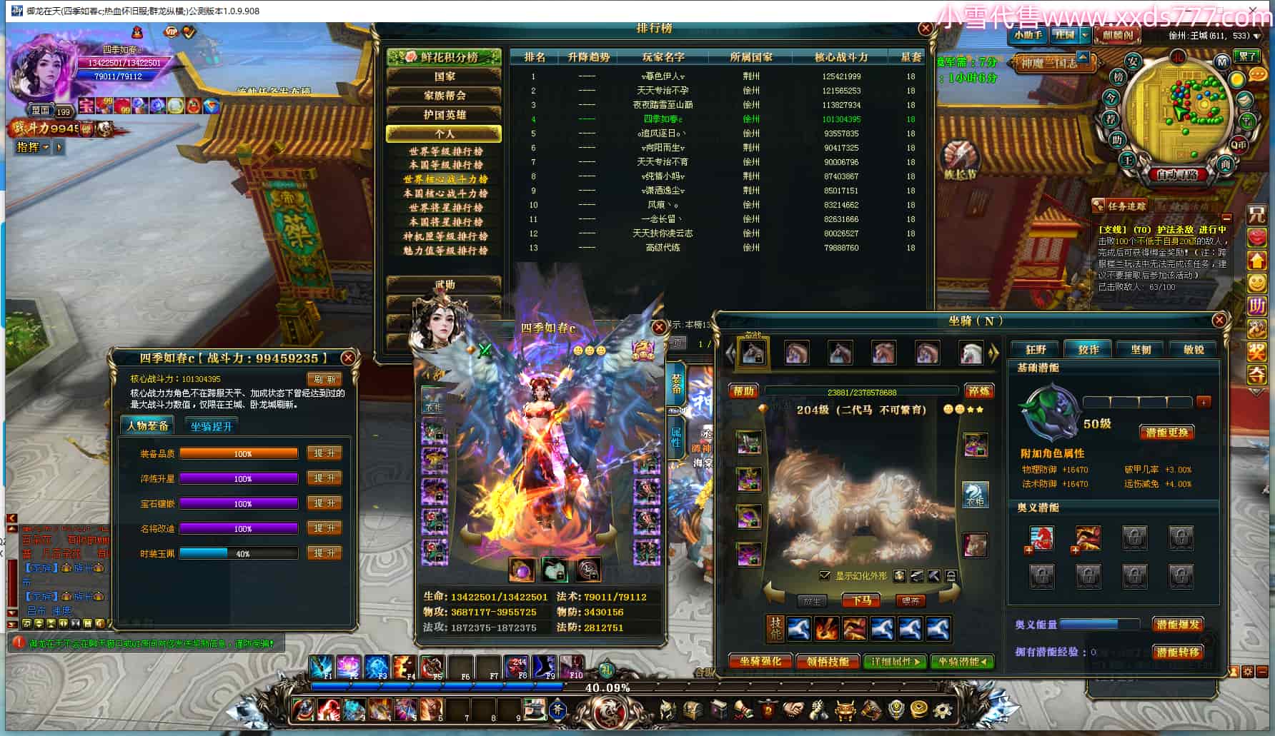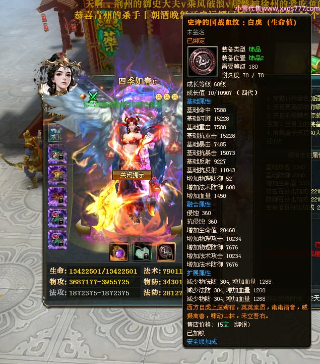 编号Q23698 四季如春c 群龙纵横 徐州 世界排名4名 9945W战力 人物黄金极品橙18X(9件混沌) 马黄金极品橙14X 人物紫龙印 马绿龙印 六等单双属性石头 已开完永久18星套 可以转移百分百安全