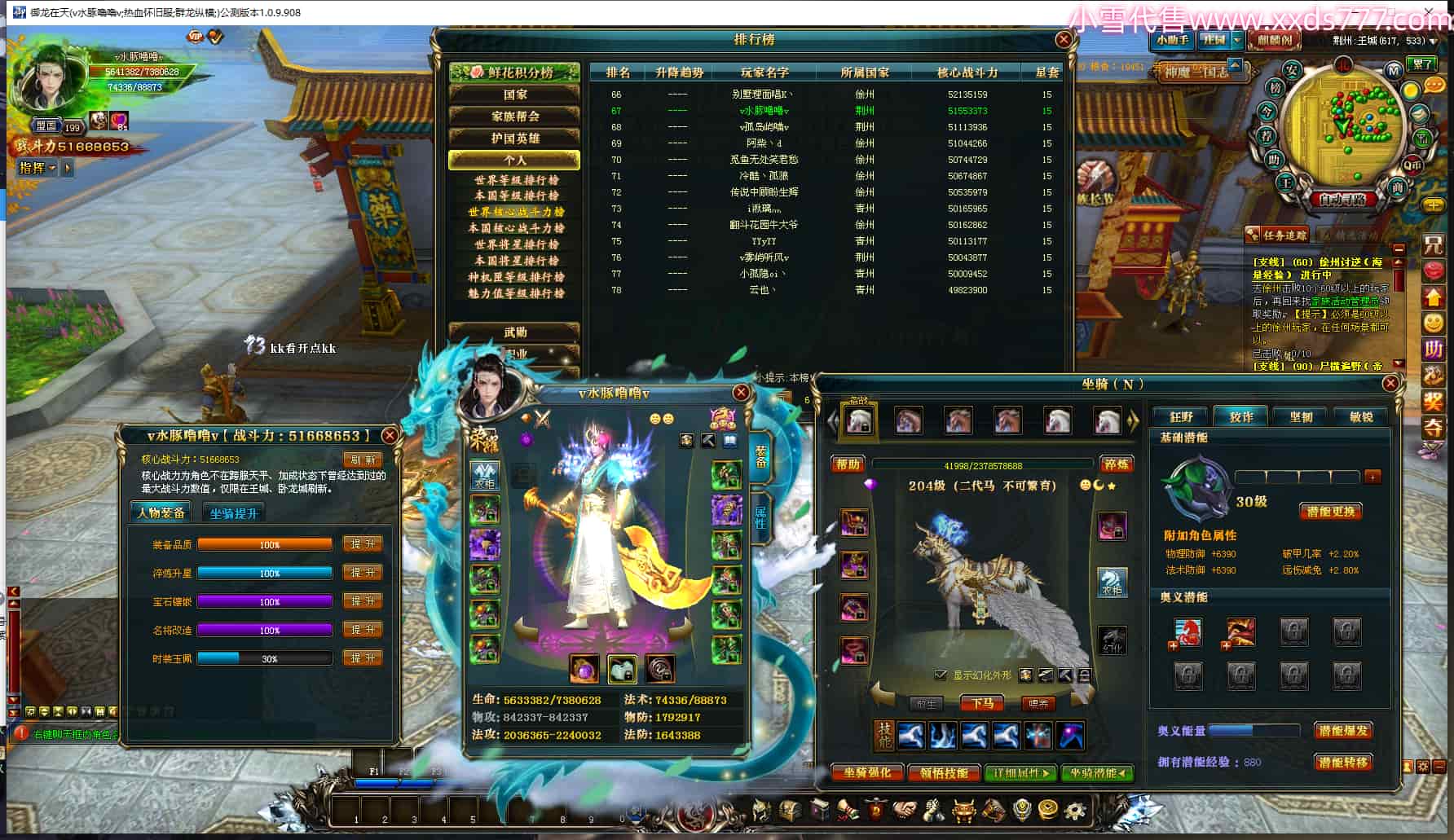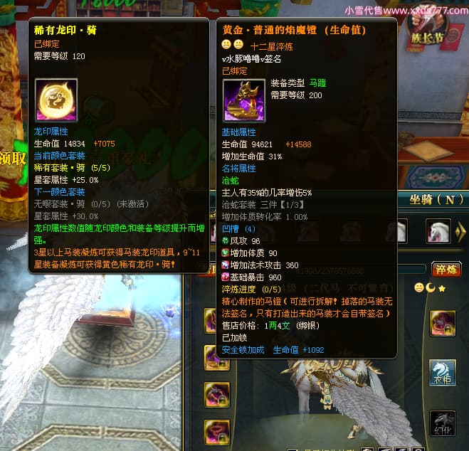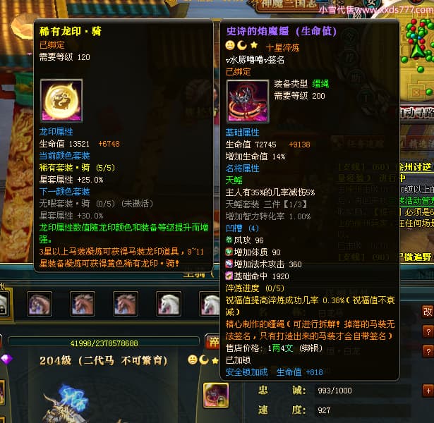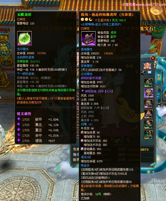编号Q23701 v水豚噜噜v 群龙纵横 荆州 世界排名67名 5166W战力 人物黄金加强橙12X(8件15X9件混沌) 马普通橙10X 人物绿龙印(2件紫龙印) 马黄龙印 六等单双属性石头 已开完永久15星套 可以转移百分百安全