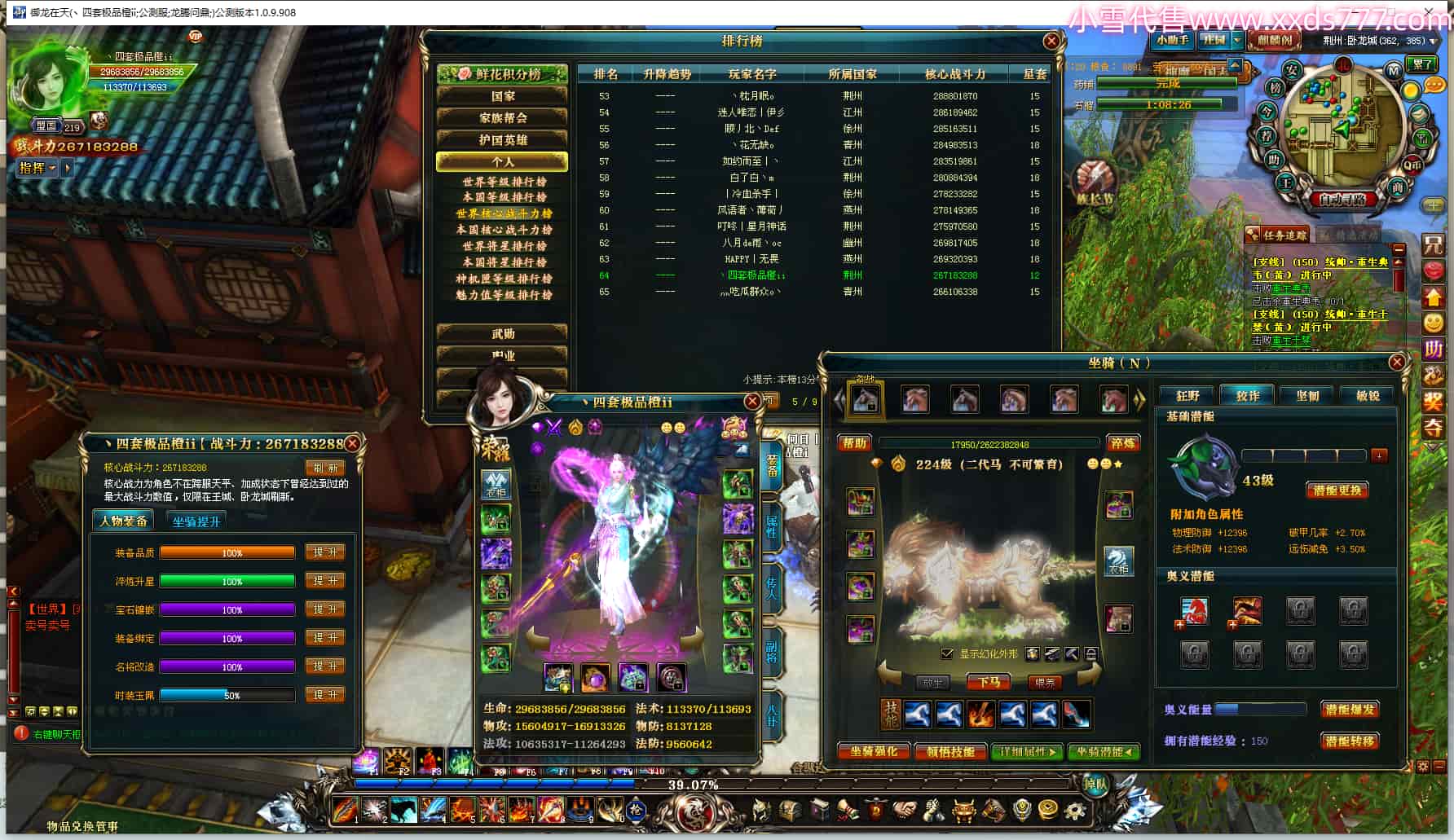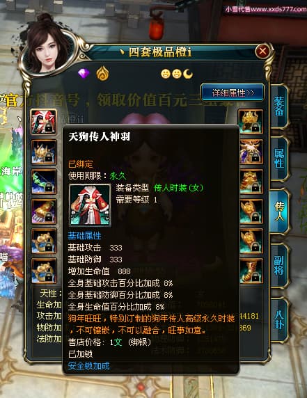 编号T23702 丶四套极品橙ii 龙腾问鼎 荆州 世界排名64名 26718W战力 人物黄金极品橙12X(3件18X5件15X9件混沌) 传人黄金极品橙15X 副将极品橙15X 马黄金极品橙13X 极品紫15披风 人物星魂16级 传人星魂16级 副将星魂6级 马星魂16级 人物铭刻2件18级4件16级其余15级 人物差一件鞋子点亮16星 马铭刻13级 点亮14星 人绿龙印(2件紫龙印) 马绿龙印 六等单双属性神圣完美无暇石头 黄绿孔 可以转移百分百安全